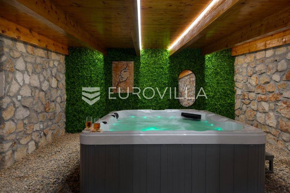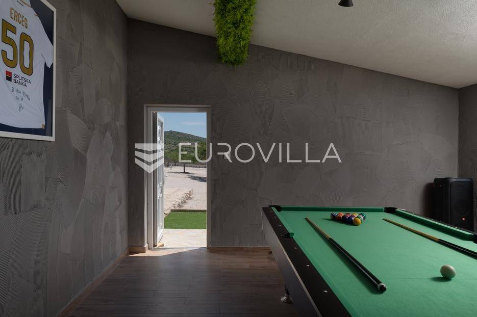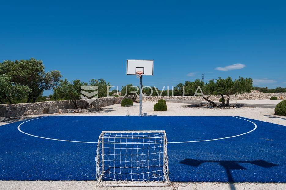 Brač, uređeno imanje posloženo na skoro 10 000 m2 predstavlja savršeno je mjesto za uživanje i odmor.Vila broji četiri spavaće sobe , četiri kupaonice , WC , dnevni boravak i suvremeno opremljenu kuhinju ( perilica za sude, mikrovalnu, aparat za kavu, pećnicu, toster, frižider i ledomat ). U potpunosti je opremljena s perilicom za robu , četiri TV-a sa satelitskim programima , a sve prostorije su pokrivene s klima uređajima i neograničenim WI-FI internetom.Objekt ima smještajni kapacitet za ukupno dvanaest osoba.Pomno osmišljena okućnica krije vanjski bazen ( 32 m2 ) , jacuzzi , finsku saunu , dva vanjska tuša , padel teren , košarkaški teren , balotaški teren , mini golf , vanjsku teretanu , stolni tenis , stolni nogomet , biljarski stol , pikado , dječije igralište, dva vanjska kamina, vanjsku ljetnu kuhinju i vinski podrum.Za sve ostale informacije, stojimo Vam na raspolaganju.