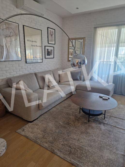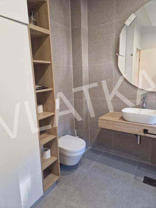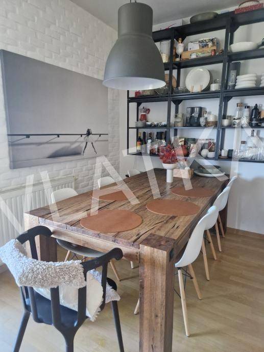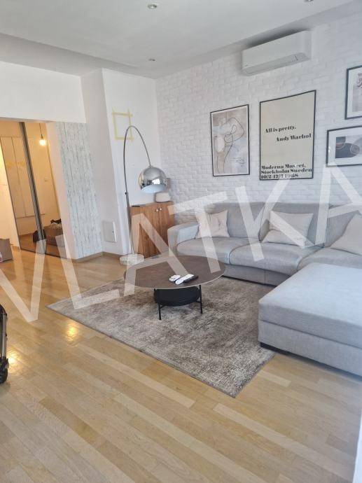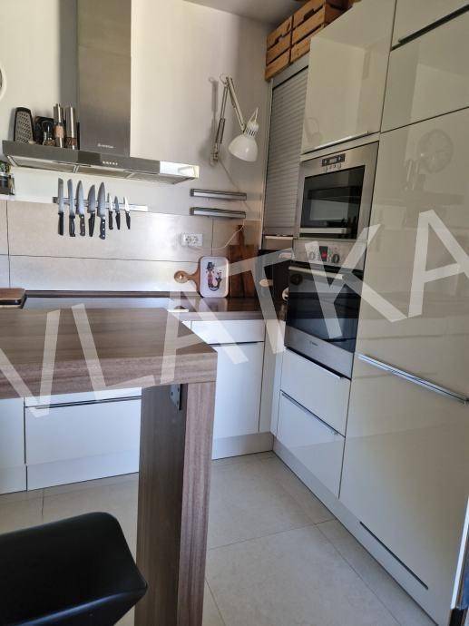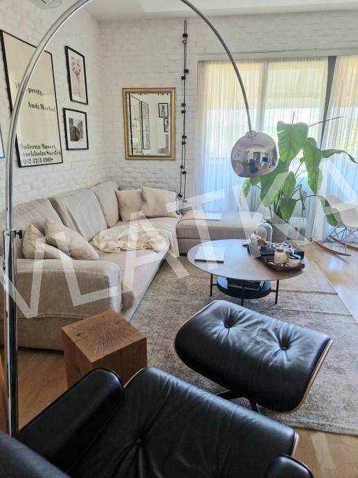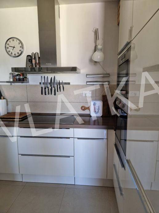 Stan je potpuno opremljen kvalitetnim namještajem i uređajima (Nolte kuhinja, Bosch, Miele), ima podno grijanje u renoviranoj kupaonici, pripremu za kamin, Vimar pametni sustav i električne rolete.