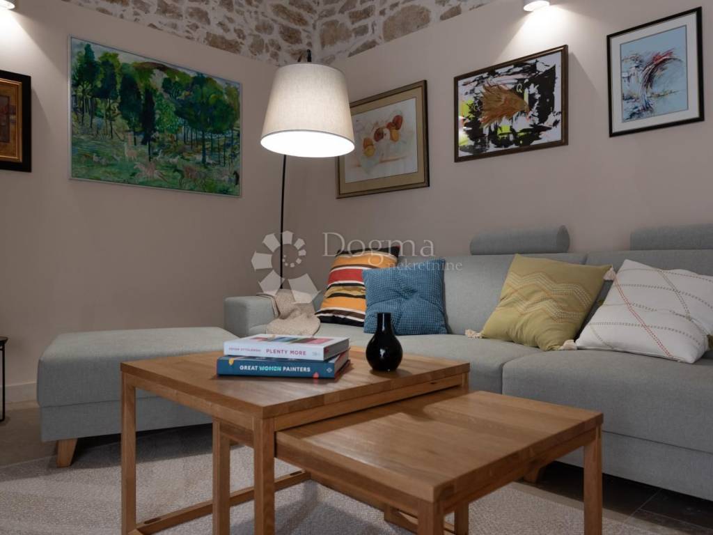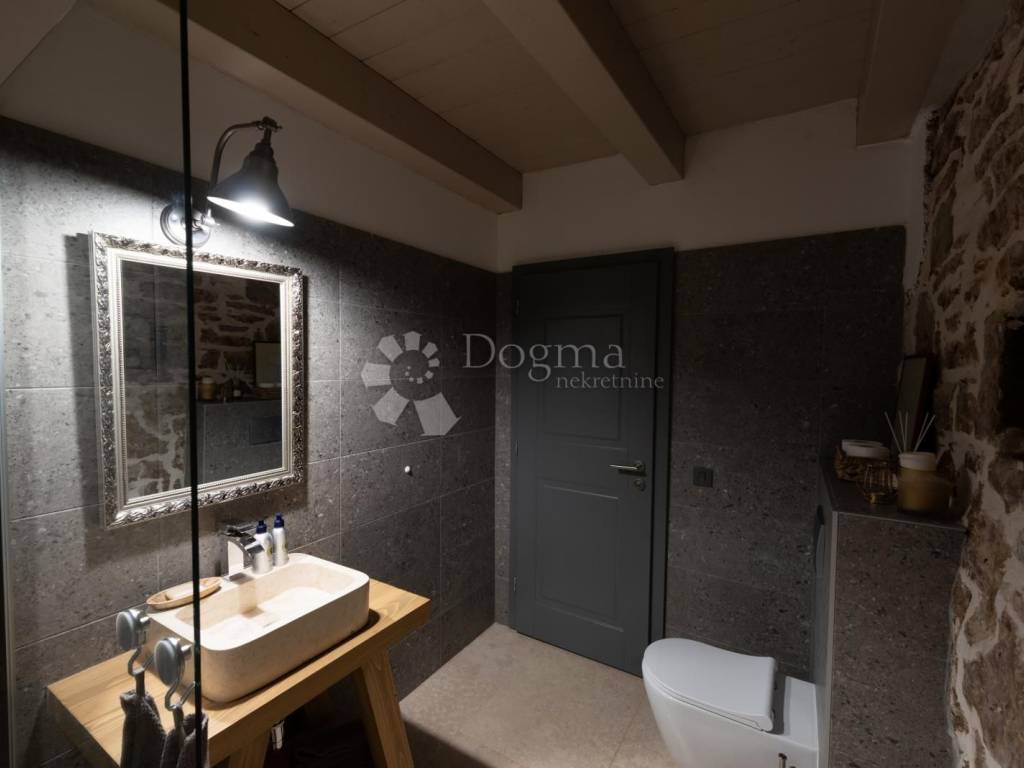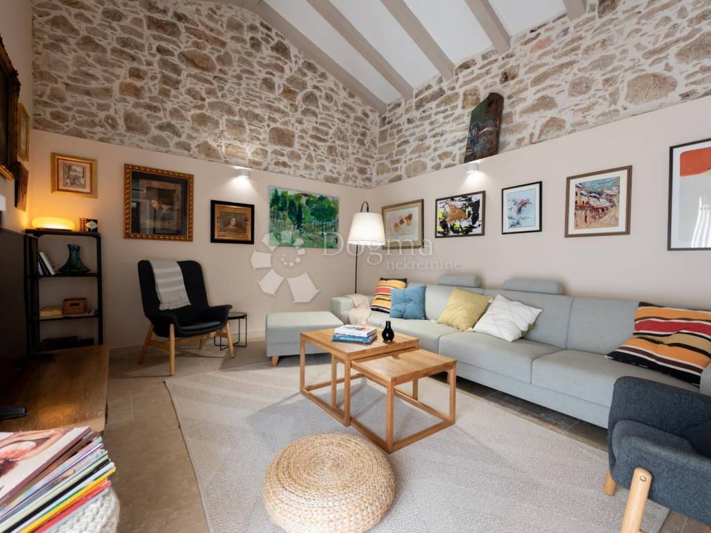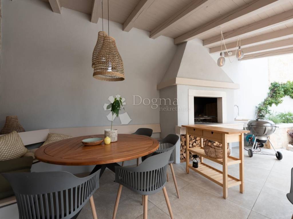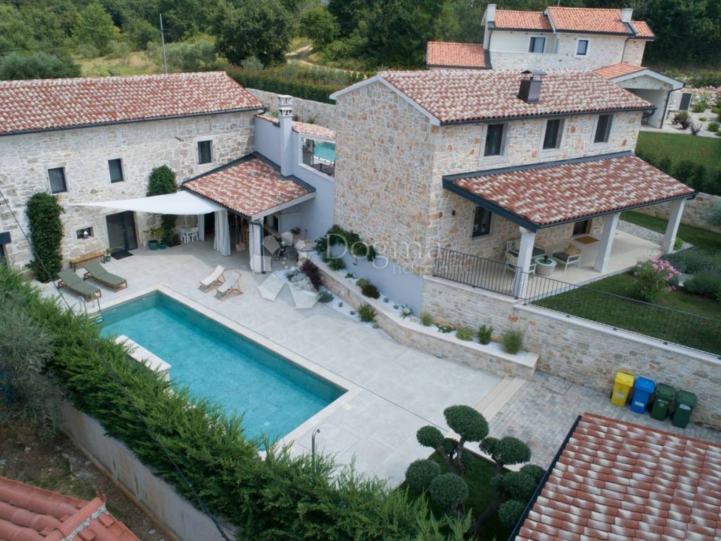 Kuća se sastoji od dnevnog boravka, kuhinje, prostranih spavaćih soba i elegantno uređenih kupaonica, pružajući sav potreban komfor.Privatni vrt površine 980 m2 s bazenom dimenzija 12.80 m x 3.50 m pruža savršeno mjesto za opuštanje i uživanje u prirodnom okruženju. U dvorištu se nalazi i mali maslinik. Uz kuću dolaze tri parkirna mjesta, što dodatno doprinosi praktičnosti i komforu.