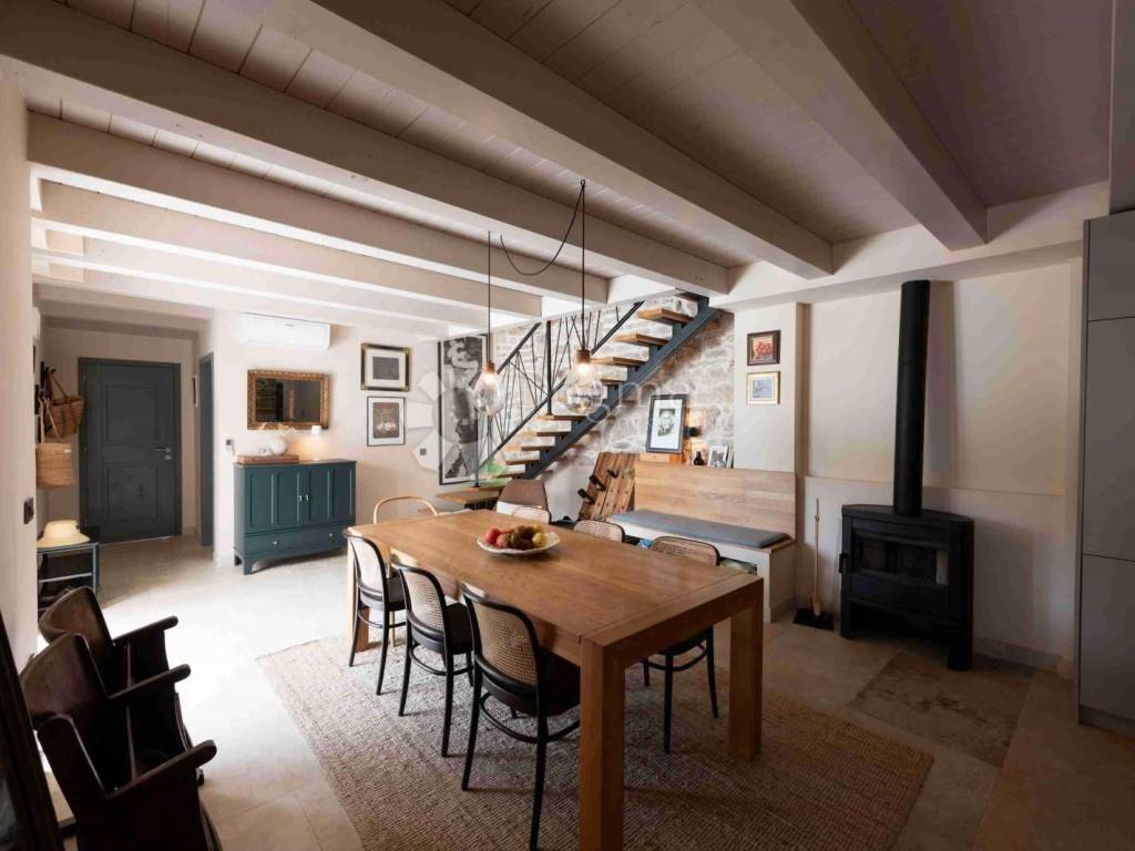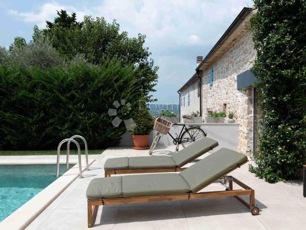 Na prodaju Luksuzna vila u srcu Prodaje se potpuno renovirana istarska kamena vila okružena vinogradima i maslinicima, smještena u mirnom selu na vrhu brežuljka s prekrasnim pogledom na dolinu rijeke Mirne. Ova čarobna lokacija pruža savršeno utočište za one koji traže mir, prirodu i autentičan istarski ugođaj.