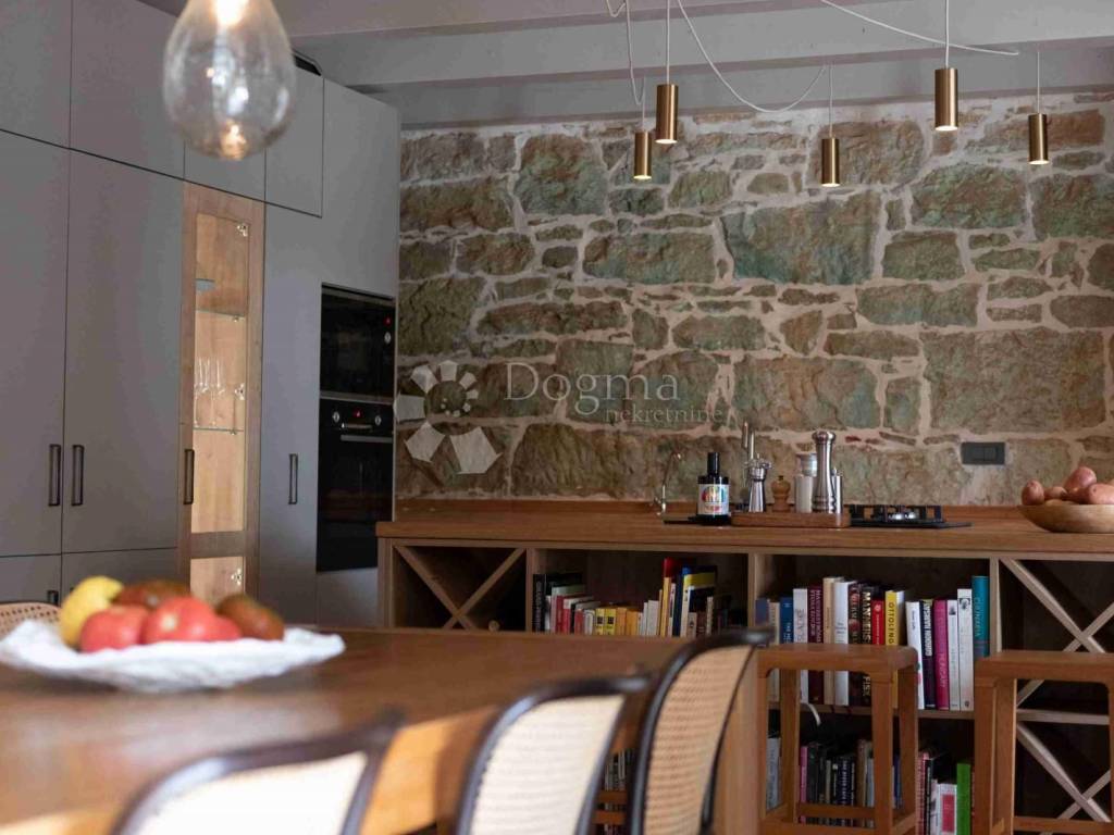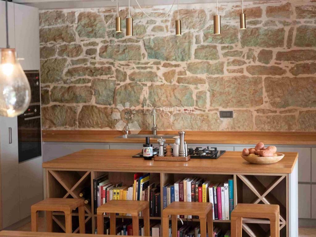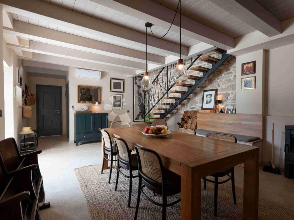 Ulaskom u kuću otkriva se udoban dnevni boravak s moderno uređenim minimalističkim namještajem, blagovaonicom i potpuno opremljenom kuhinjom idealnom za kulinarske eksperimente s vrhunskim istarskim sastojcima. Uz sjedeći dio nalazi se i peć na drva koja osigurava ugodnu atmosferu tijekom cijele godine.