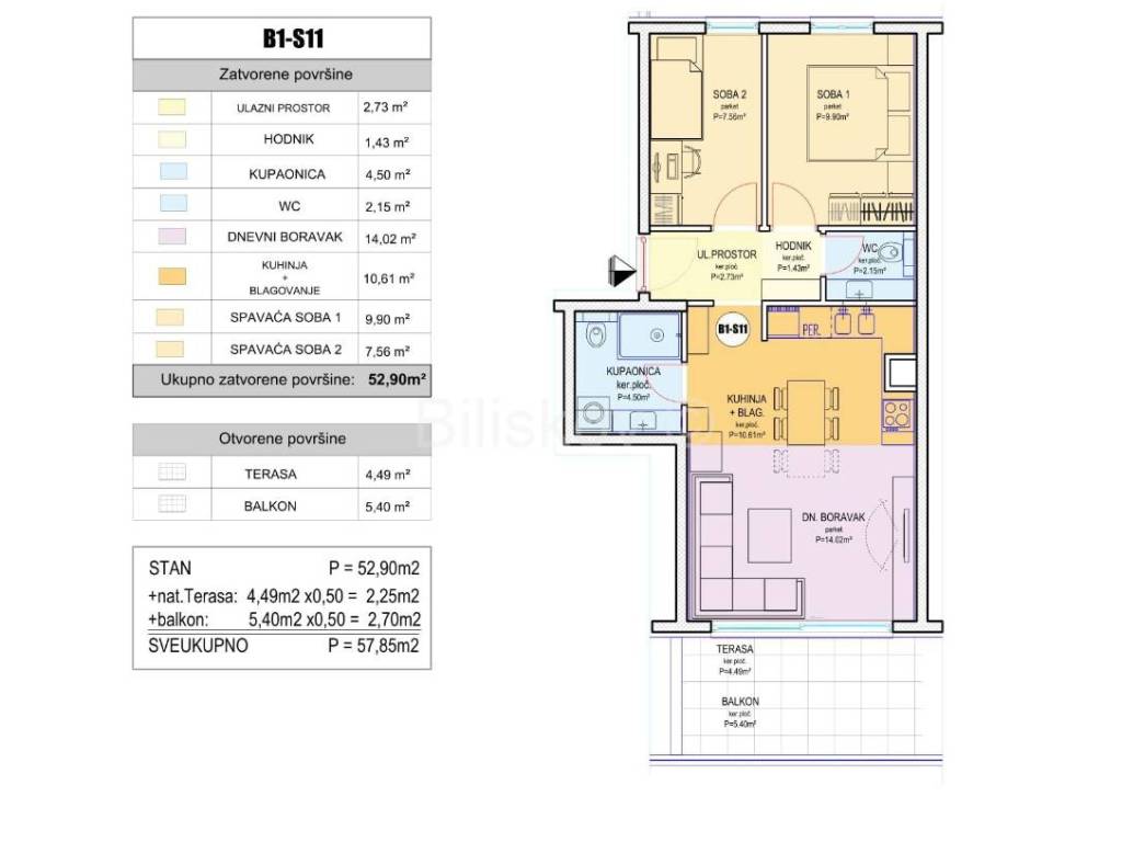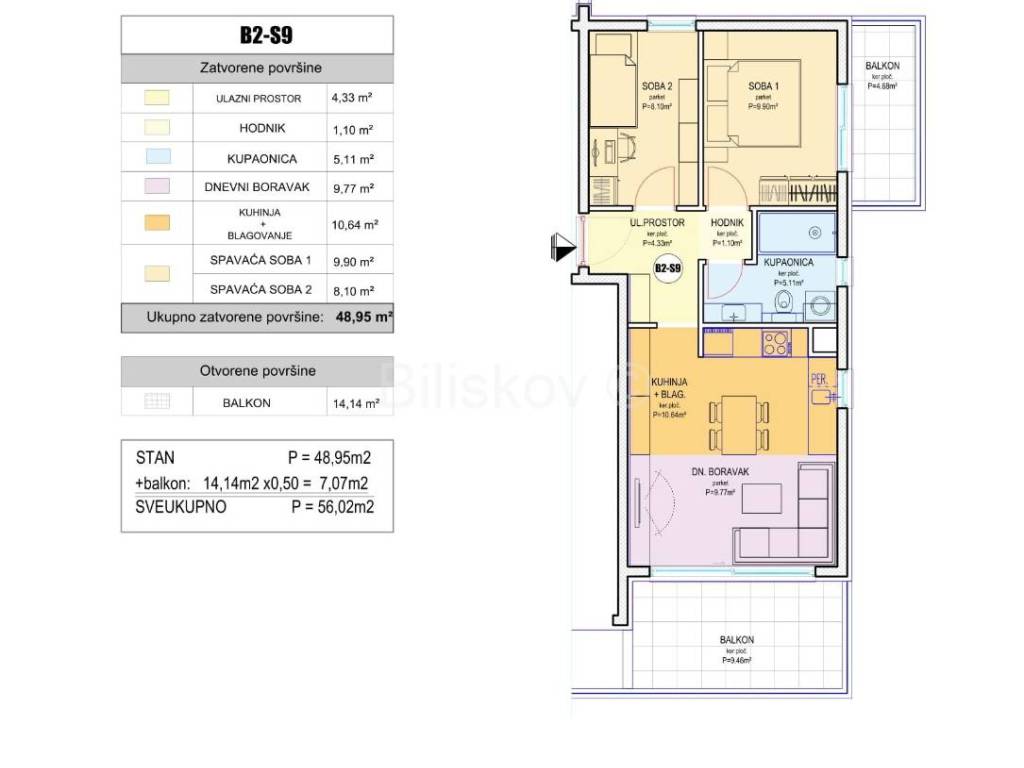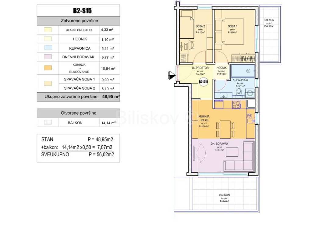 B2-S13 2 spavaće sobe jugoistok-sjever 56,67m2, 6.500/m2 368.355 B2-S15 2 spavaće sobe jugoistok-sjever 56,02m2, 6.500/m2 364.130