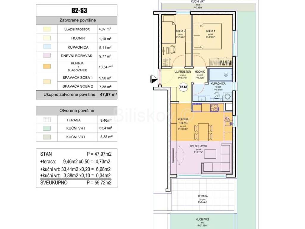 B2-S10 2 spavaće sobe jugoistok-sjever 56,67m2, 5.600/m2 317.352