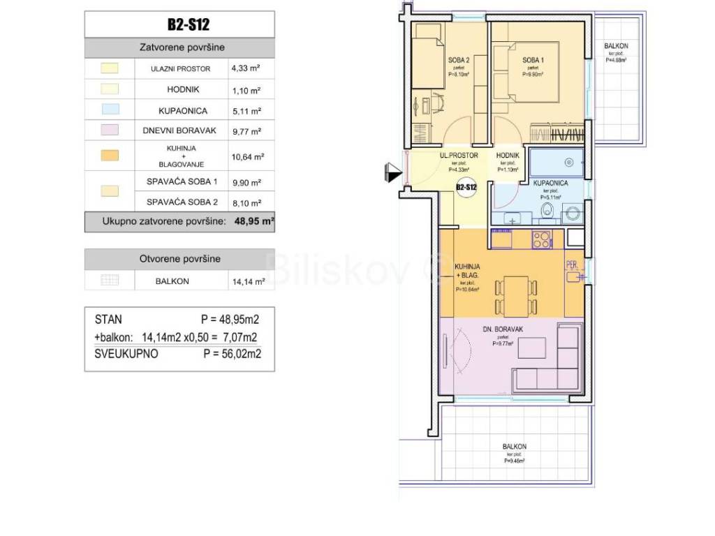 B2-S12 2 spavaće sobe jugoistok-sjever 56,02m2, 5.600/m2 313.712