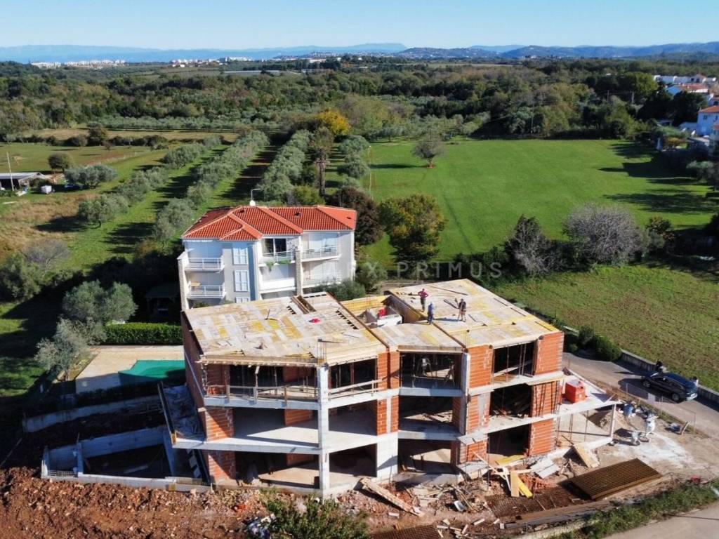 U atraktivnoj i mirnoj zoni Zambratije, u kvalitetnoj novogradnji s bazénom, prodaje se moderan stan smješten na drugom katu, s prekrasnim pogledom na more.
