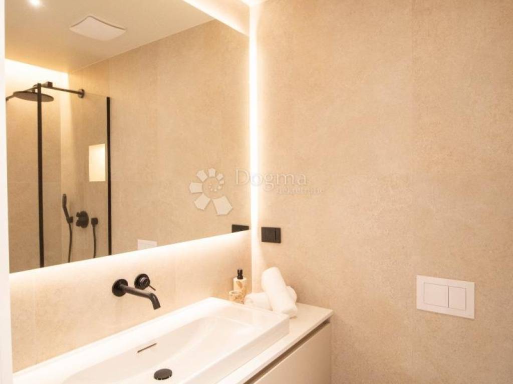 Posredujemo u najmu predivnog stana koji se nalazi na 5. katu ekskluzivne novogradnje s pogledom na cijeli brački kanal, uređeni i opremljeni najsuvremenijim sustavima za stanovanje. Preko sustava "Pametnog stana" svojim pametnim telefonom upravljate rasvjetom, roletama, klimatizacijskim i parlafonskim sustavom. Stanovi su klimatizirani Daikin dizalicom topline s pripremom tople vode i podnim grijanjem. Stanovi su opremljeni svim potrebnim za stanovanje, do zadnjeg detalja. Svi materijali i uređaji korišteni u opremanju stanova su najvišeg nivoa kvalitete. Stan je potpuno opremljen. Objekt posjeduje video nadzor, domara u službi stanara 16 sati dnevno, te potpuno opremljeni fitness centar. Stan ima na korištenje dva parkirna mjesta u podzemnoj garaži objekta i sprema u podzemnoj etaži. Iznajmljuje se dugoročno, minimalno jedna godina.