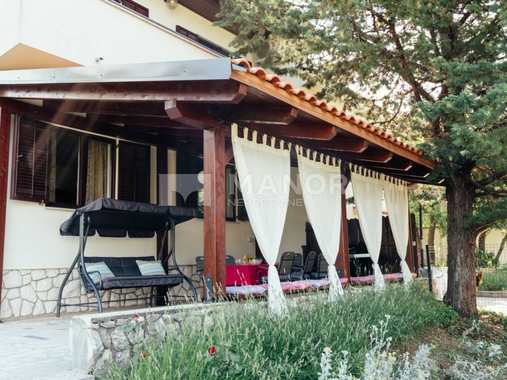 Manor predstavlja dvojnu kuću s prostranom okućnicom, stambene površine 150 m2, smještenu na Škrljevu.