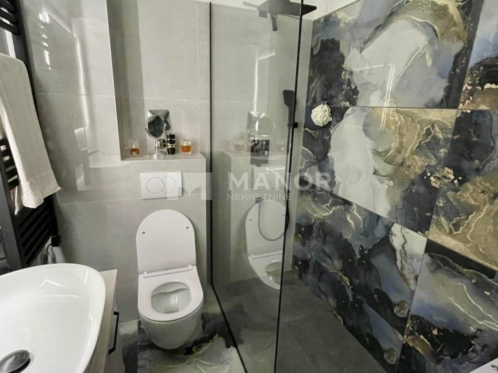 Stan je vrhunski i s ukusom namješten i potpuno je opremljen, a nalazi se na četvrtome katu uredne stambene zgrade u blizini svih potrebnih sadržaja i s dovoljno parkirnih mjesta u okolici zgrade.