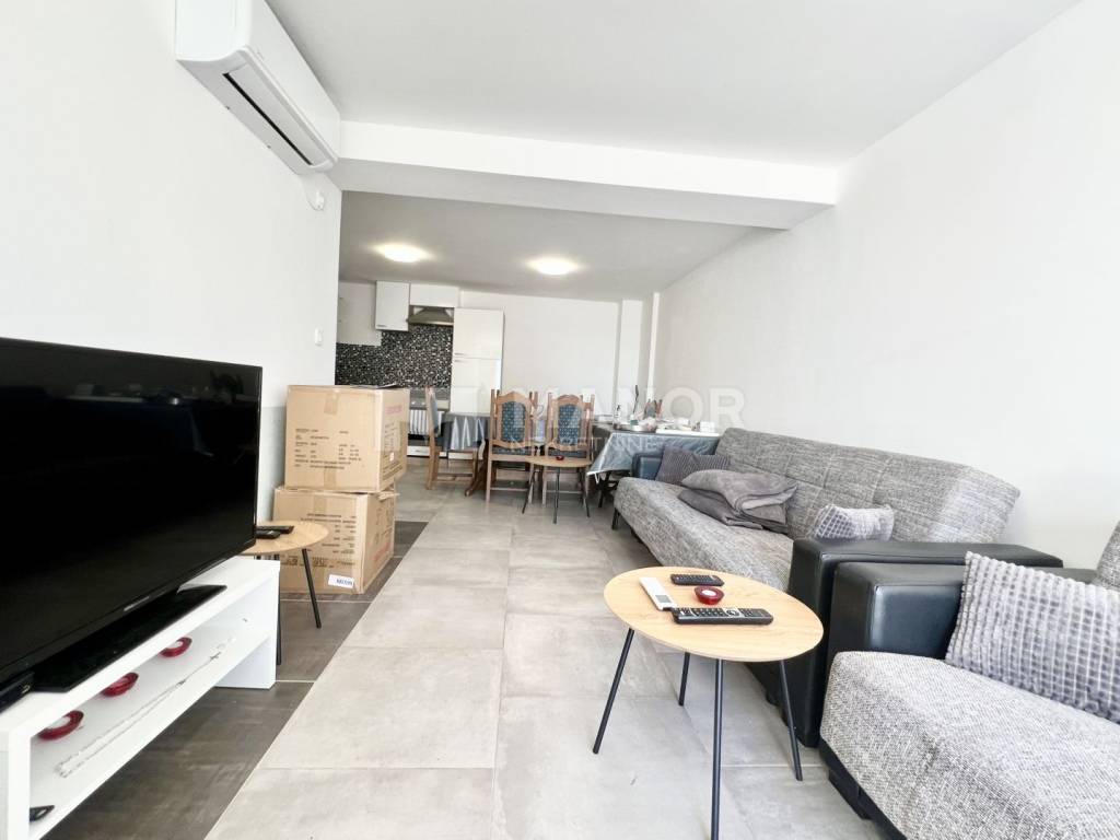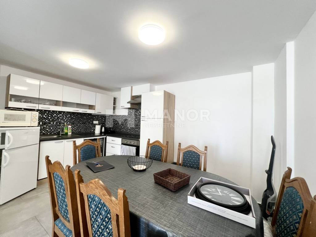 Sastoji se od prostranog dnevnog boravka s kuhinjom i blagovaonicom, jedne spavaće sobe te kupaonice. Posebna prednost je terasa s koje se pruža djelomičan pogled na more, idealna za opuštanje i uživanje na svježem zraku. Stan također ima osigurano parkirno mjesto unutar okućnice, što dodatno doprinosi udobnosti i praktičnosti boravka. Odličan izbor za stanovanje ili kao investicija za turistički najam!