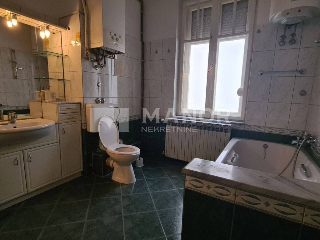 Manor predstavlja stan površine 140 m2 smješten na području centra grada. Stan se sastoji od hodnika, četiri sobe, kuhinje s blagovaonicom, ostave te dvije kupaonice. Stan je smješten na trećemu katu u urednoj zgradi. Idealno za uredski prostor i slične namjene. Nekretnina se nalazi u blizini svih bitnih sadržaja.