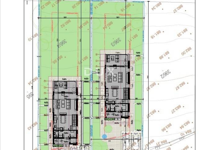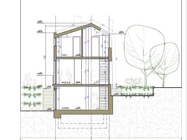 Uz zemljište dolazi i idejni projekt koji uključuje: - suteren s unutarnjim bazenom i prostorom za zabavu (play room) - prizemlje s dnevnim prostorijama - kat s tri spavaće sobe