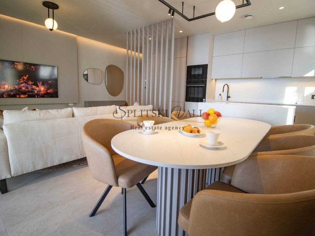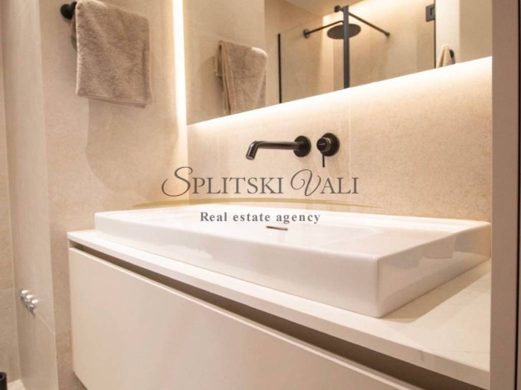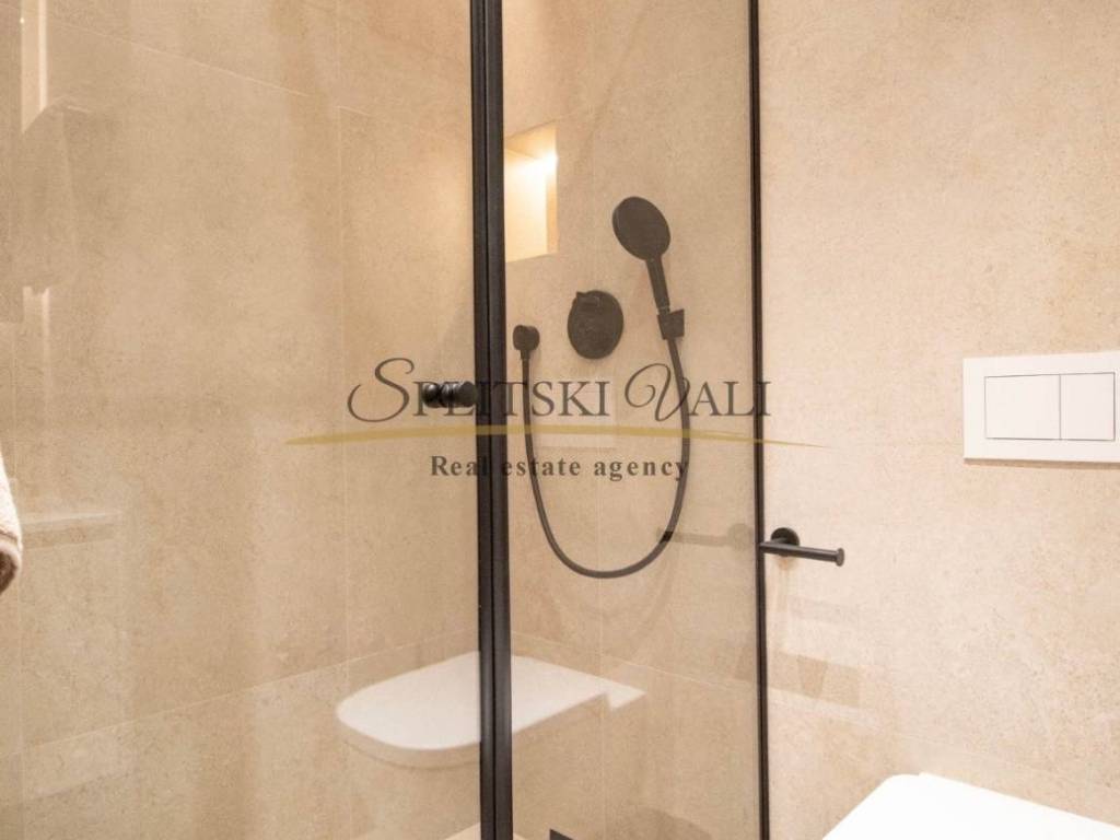 Posredujemo u dugoročnom najmu luksuznog dvosobnog stana korisne površine 90,67m2 koji se nalazi u ekskluzivnoj novogradnji Bel Etage 2 s iznimnim pogledom na more. Sastoji se od hodnika, kuhinje s blagovaonicom i dnevnog boravka, dvije spavaće sobe, dvije kupaonice te lođe. Stanu su dostupna na korištenje 2 parkirna mjesta u podzemnoj garaži objekta te sprema u podzemnoj etaži. Preko sustava Pametnog stana svojim pametnim telefonom upravljate rasvjetom, roletama, klimatizacijskim i parlafonskim sustavom. Stanovi su klimatizirani Daikin dizalicom topline s pripremom tople vode i podnim grijanjem. Zgrada ima videonadzor, recepciju, teretanu i saunu. Najmoprimac plaća posredničku naknadu od 1 mjesečne najamnine+PDV. Za više informacija molimo Vas nazovite na broj 0915002178 - Ana. Razgled nekretnine moguć je isključivo uz potpisani Ugovor o posredovanju, a što je u skladu sa Zakonom o zaštiti podataka i Zakonom o posredovanju i prometu nekretninama.