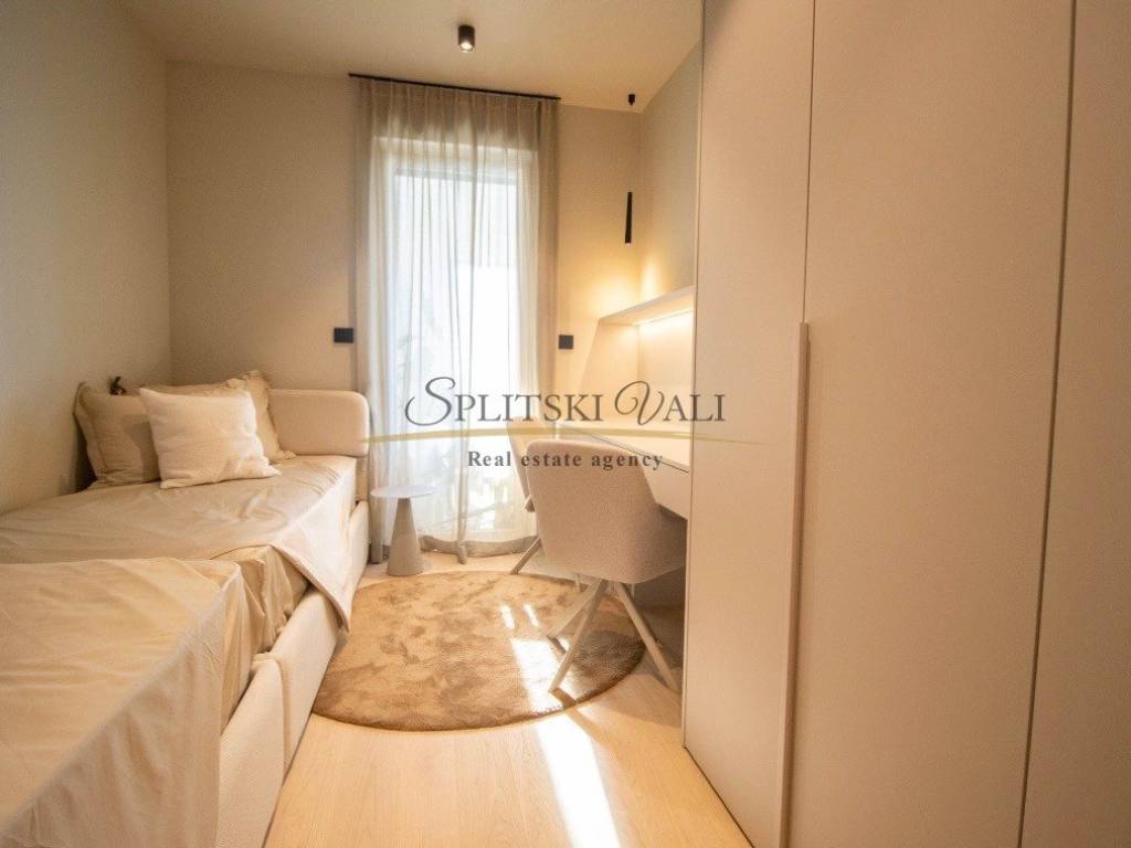 Posredujemo u dugoročnom najmu luksuznog dvosobnog stana korisne površine 84,41m2 koji se nalazi u ekskluzivnoj novogradnji Bel Etage 2 s iznimnim pogledom na more. Sastoji se od hodnika, kuhinje s blagovaonicom i dnevnog boravka, dvije spavaće sobe, dvije kupaonice te lođe. Stanu su dostupna na korištenje 2 parkirna mjesta u podzemnoj garaži objekta te sprema u podzemnoj etaži. Preko sustava Pametnog stana svojim pametnim telefonom upravljate rasvjetom, roletama, klimatizacijskim i parlafonskim sustavom. Stanovi su klimatizirani Daikin dizalicom topline s pripremom tople vode i podnim grijanjem. Zgrada ima videonadzor, recepciju, teretanu i saunu. Najmoprimac plaća posredničku naknadu od 1 mjesečne najamnine+PDV. Za više informacija molimo Vas nazovite na broj 0915002178 - Ana. Razgled nekretnine moguć je isključivo uz potpisani Ugovor o posredovanju, a što je u skladu sa Zakonom o zaštiti podataka i Zakonom o posredovanju i prometu nekretninama.