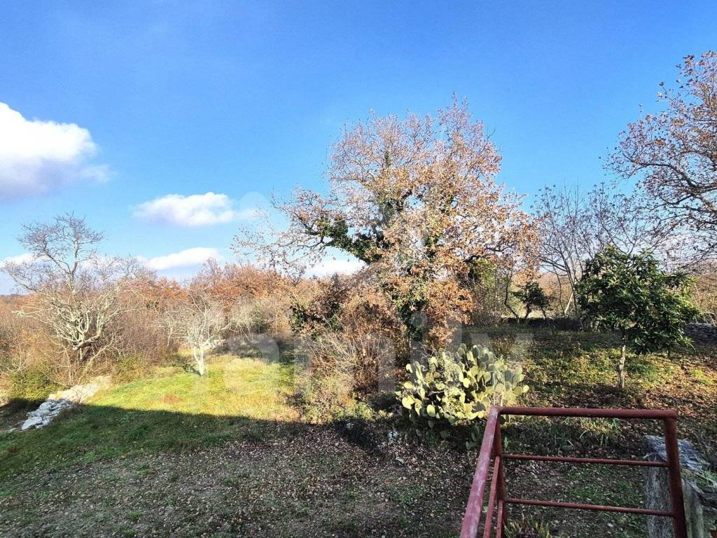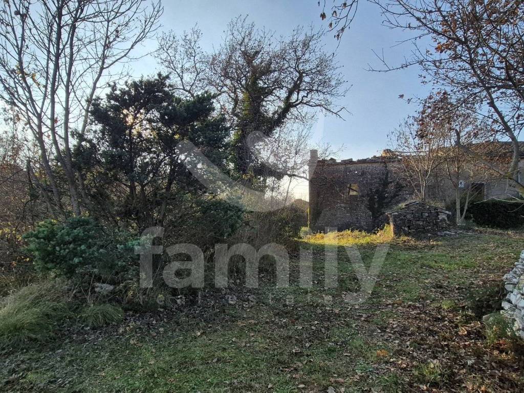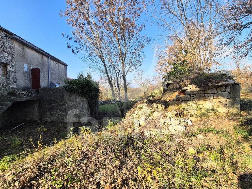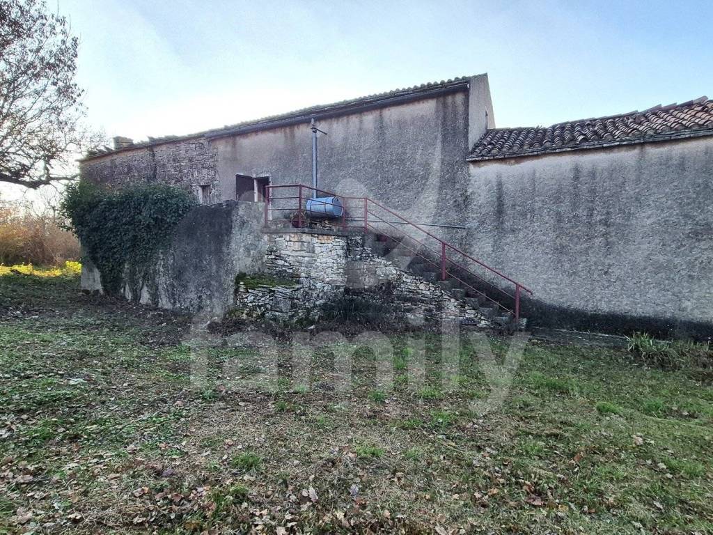Na prodaju je dvojna kuća za renovaciju smještena na iznimno prostranom zemljištu, na lokaciji koja pruža potpunu privatnost, tišinu i pogled na imanje sveukupne površine 36 074 m2. Nekretnina se nalazi svega 30-tak metara od asfaltirane ceste, s osiguranim pristupnim putem, a istovremeno je dovoljno udaljena od svakodnevnih gužvi. Na zemljištu ima niskih stabala hrasta, ostalo je pašnjak i vinograd. Zemljište je raznoliko i vrlo atraktivno: jedan dio je ograđen tradicionalnim suhozidom, dio je potpuno ravan i idealan za vrt, bazen ili rekreacijski prostor, dok cijelo zemljište odiše autentičnim istarskim karakterom i prirodnim okruženjem. Na samom zemljištu nalazi se dvojna kamena kuća kojoj je sveukupna površina 435 m2 raspoređeno na prizemlje, kat i potkrovlje. Kuća raspolaže s visokim potencijalom za uređenje za stanovanje ili u ugostiteljske svrhe. Na katu se trenutno nalaze soba, kuhinja i manji dnevni prostor s grijanjem na drva, dok je kupaonica odvojena. Drugi dio objekta ima zaseban ulaz i danas služi kao garažni prostor i spremište, s mogućnošću prenamjene u dodatne stambene ili turističke sadržaje. Druga polovica kuće je skroz u kamenu s tim da je porušena. Ispred kuće nalazi se urbanizirani dio zemljišta pogodan za gradnju dodatnih objekata na svega 3602 m2. Zemljište je pozicionirano sa blagim nagibom tako da posjeduje otvoreni pogled, a sa prizemlja se djelomično vidi i more. Okvirno 20 metara udaljeno od kuće nalazi se drugi objekt koji je djelomično postojan u kamenu koji je korišten kao štala sveukupne površine 90 m2. Ispred nekretnina posjedujemo i kažun sveukupne površine okvirno 10 m2. Zbog velikog broja suhozida postoji velika količina kamenja za ograditi česticu. Na zemljištu se nalazi i cisterna za vodu. Jedan od dva objekta posjeduje uporabnu dozvolu.