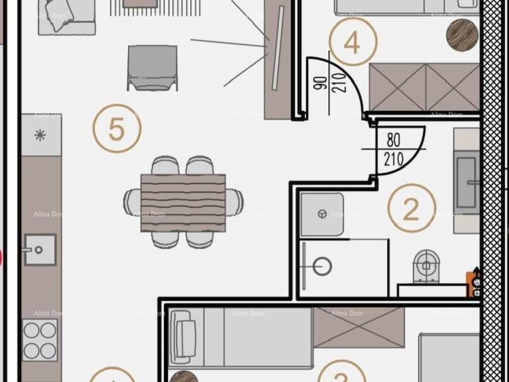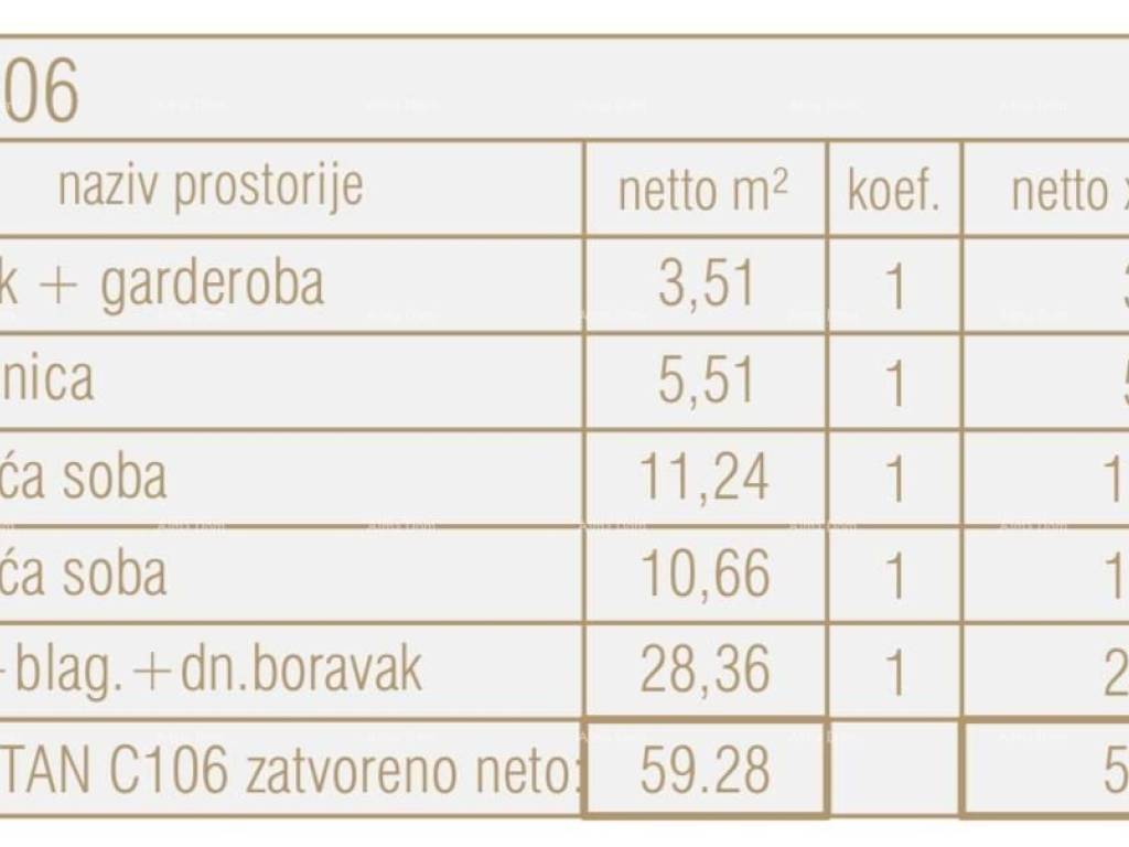 Zgrada stambeno-poslovne namjene, podijeljena je u tri jedinice, centralni, južni i sjeverni volumen. Ukupno će imati 78 stanova i 18 poslovnih jedinica. U objektu se nalazi bazen i podzemna garaža.Stanovi se prodaju po sistemu "ključ u ruke" sa kompletno uređenim kupatilom (namještaj i sanitarije), podnim oblogama u svim prostorijama (keramika 1. klase, laminat), sa provedenim elektroinstalacijama, ugrađenim klima uređajem, unutarnjom stolarijom, vanjskom PVC ili ALU stolarijom, protuprovalnim i protupožarnim ulaznim vratima, antenskim sustavom, UTP mrežom, te zidovima i stropovima bijele boje.Posebna pažnja je također pridana u osmišljavanju i uređenju zelenih površina.Stan C106, nalazi se na 1.katu centralne jedinice zgrade i sastoji se od:Hodnik+garderoba, kuhinje+blagovaonice+dnevnog boravaka, kupaonice i 2 spavaće sobe.*Napomena: Garažno parking mjesto, kao i spremište se kupuju dodatno.Za više informacija, molimo kontaktirajte:Info:Azra Valjevac+385 91 6115706+385 98 420885azra@almadominvest.com