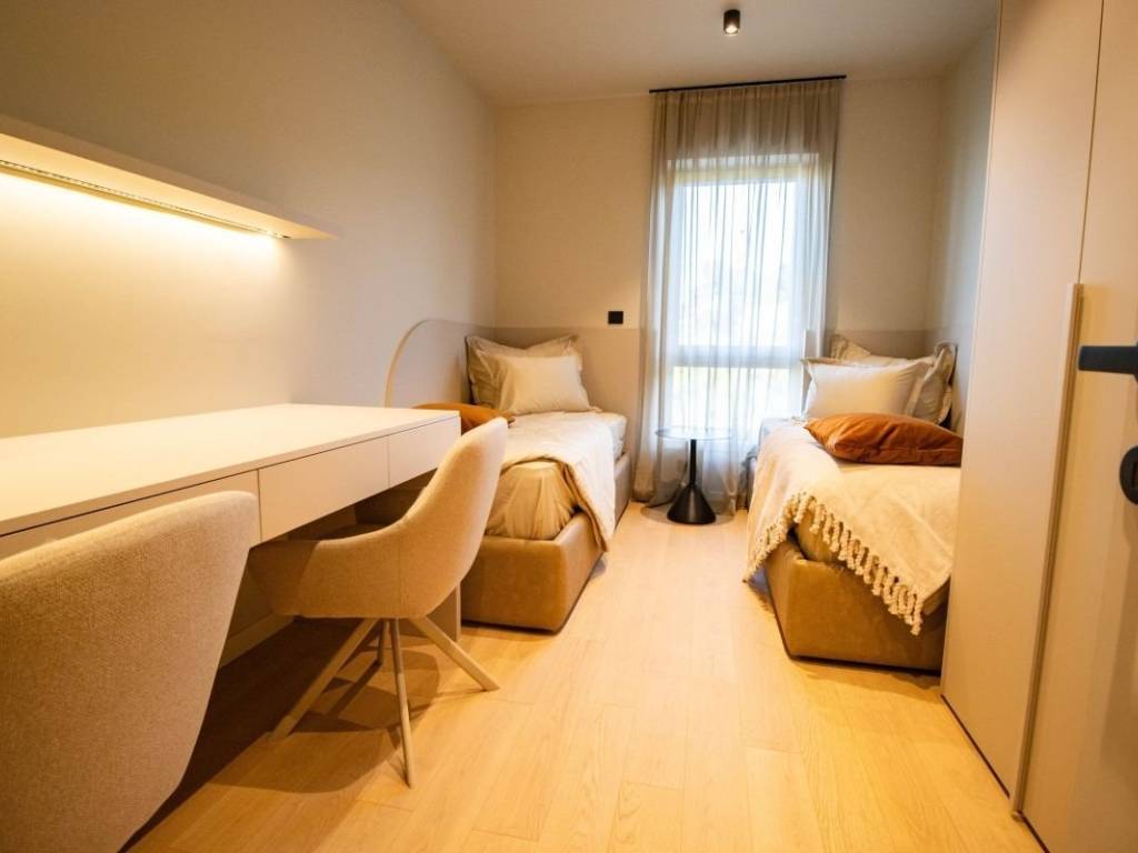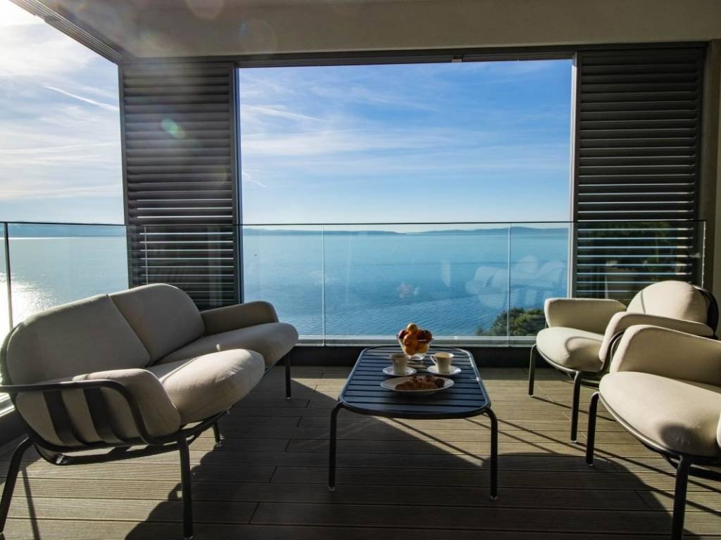 Za najam, dizajnerski dvosobni stan koji se smjestio u zgradi novije gradnje, koja se nalazi u blizini žnjanske plaže. Nekretnina odiše modernim uređenjem, privatnošću i mirom što je čini idealnom nekretninom za svakodnevno življenje bilo da je riječ o urbanom ili mirnom životu. Nekretnini pripadaju također dva garažna parking mjesta što doprinosi komforu samog boravka. Nekretnina se prostire na otprilike 73m2 stambenog dijela, te dodatnih 18m2 lođe. Nekretnina se sastoji od ulaznog hodnika koji vodi do jedne master spavaće sobe s pripadajućim kupatilom, manje spavaće sobe, jednog kupatila, te otvorenog prostora gdje se nalaze kuhinja, blagovaonica i dnevni prostor. Iz dnevnog prostora se izlazi na prekrasni prostranu lođu s koje se pruža pogled na more i otoke. Dizajnersko uređenje nekretnine, klimatizacija koja se odvija putem Daikin dizalica topline s pripremom tople vode i podnim grijanjem, sustav pametnog stana preko kojeg se omogućuje paljenje svijetla, roleta, upravljanje parlafonom i klimatizacijom, te mnogobrojne pogodnosti nekretnine, čine ovaj stan idealnim za život. U samom objektu nalazi se fitness i spa zona što dodatno doprinosi ugođaju pri boravku u samoj nekretnini. Lokacija nekretnine je idealna za svakodnevni život zbog blizine svog sadržaja za svakodnevni život, bilo da je riječ o urbanom načinu života ili obiteljskom.