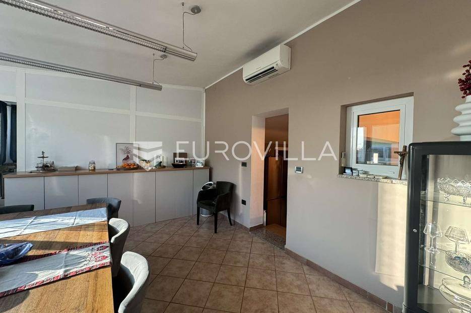 U Medulinu na idealnoj lokaciji smjestila se zgrada poslovne namjene koja se proteže kroz prizemlje i kat. Radi se o uredsko-skladišno-proizvodnoj zgradi površine 250 m2 s pomoćnim objektom od 25 m2 te podrumom iste dimenzije. U prizemlju se nalazi trgovina opremljena pultom, policama, frižiderima i svime što je potrebno za nastavak poslovanja. Također na istoj etaži je uredski dio, sanitarni čvor, prostorija za dodatni uredski prostor, garderobu ili slično. Dok su u drugom djelu prizemlja dvije komore minus režim, jedna komora plus režim te ledomat ljuskastog leda 8 t/24 h. Vanjskim stepeništem se penjemo na kat koji je trenutačno namješten za stanovanje dok je nekad služio kao poslovni prostor u obliku ureda stoga postoji mogućnost prodaje u ovakvom stanju ili bi vlasnik u potpunosti ispraznio prostoriju. Sadrži 4 klima uređaja za grijanje i hlađenje prostorija. Kat se sastoji od tri spavaće sobe, kuhinje, dnevnog boravka s blagovaonicom, spremišta i kupaonice. Parcela na kojoj se smjestila zgrada je ograđena te ostaje dovoljno slobodnog prostora kao i parkirna mjesta za više automobila. Za više informacija slobodno nas kontaktirajte.