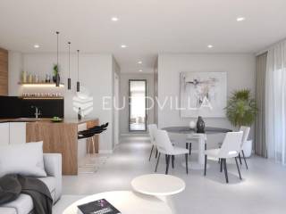 Kaštela, luksuzan Penthouse na trećem katu urbane zgrade s liftom, iz kojeg se pruža prekrasan panoramski pogled na Kaštelanski zaljev.Ovaj dvosoban, komforan stan veličine 79,12m2 sastoji se od kuhinje s blagovaonicom te dnevnog boravka otvorenog tipa (32,6 m2), hodnika i stubišta, dvije komforne spavaće sobe (master soba s vlastitom en-suite kupaonicom), kupaonice i terase veličine 119,6 m2 (od čega natkriveni dio 23,2 m2). Potpuno opremljena kupaonica i kuhinja visokog standarda.Orijentacija stana je jug- istok, a velike staklene stijene osiguravaju obilje prirodnog svjetla i prozračnost, što doprinosi komforu življenja u ovoj nekretnini.Stanu pripadaju dva garažna mjesta (25,6 m2), ostava (8,4 m2) i jedno veliko vanjsko parkirno mjesto (13 m2), sve uključeno u cijenu. Stan je s garažom direktno povezan liftom. Ukupno NKP 134,4 m2.Planirani završetak radova 12/2025. godine.Na prekrasnoj okućnici ugrađen je automatiziran sustav navodnjavanja zelenih površina te je zasađeno mediteransko odraslo bilje a zgrada ima i osobu zaduženu za brigu i održavanje prostora i zelenila.Odlična pozicija, u blizini svih sadržaja potrebnih za ugodan život, sve na par minuta hoda, kao i plaža te šetnica uz more. Izvrsna prometna povezanost i komforan pristupni put do zgrade. Međunarodna Zračna luka Split udaljena je 10 km, a u blizini je i poznata marina za brodove "Kaštela", te izvrsna pristupačna brza cesta.Grad Kaštela, s jednom od najduljih obala u Hrvatskoj, smješten je između dva UNESCO-ova grada, Splita i Trogira do kojih se stiže kratkom i ugodnom vožnjom. Zahvaljujući izvrsnoj lokaciji, predivnom prirodnom okruženju i bogatoj ponudi sadržaja, predstavlja idealno mjesto za ugodan i kvalitetan život ili godišnji odmor.Nekretnina je odlično ulaganje za tvrtke u sustavu PDV-a.Visoko kvalitetna gradnja i korištena oprema:postavljene podovi, parket i keramičke pločice visoke kvaliteteelektrično podno grijanje s digitalnim upravljanjem instalirano u kupaonicikompletna opremljeno kupaonica (električni bojler za grijanje vode, sanitarije, walk-in tuš u okviru zadanog cjenovnog ranga)ulazna protuprovalna i protupožarna vrataInverter klima uređaj snage 3,5 kW u dnevnom boravku i svim sobamaunutarnja stolarija bijele boje i ravnih, modernih linijavanjska stolarija antracit PVC, s podizno kliznim stijenkamaoluci skriveni u fasadivrhunska toplinska i zvučna izolacija, vanjska fasada 8 cm kamena vunaNekretnina će biti izvedena u rangu A+ energetskog certifikata sukladno standardima.Za više informacija stojimo Vam na raspolaganju.