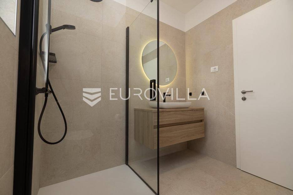 Prodaje se prekrasna prizemnica u mirnom dijelu Bala, idealna za obiteljski život ili odmor.Ova moderna prizemnica nudi otvoreni koncept dnevnog boravka i kuhinje, dvije udobne spavaće sobe, kupaonicu i dvije ostave.Terasa (22 m²) obložena kamenom, povezana je s vrtom i ljetnom kuhinjom. Dvorište je uređeno travnjakom s automatskim navodnjavanjem, čempresima za prirodnu ogradu te ambijentalnom rasvjetom.Kuća je izgrađena od najkvalitetnijih materijala, s podnim grijanjem u cijelom prostoru, PVC stolarijom s komarnicima i Mitsubishi A++ klimama. Open space dnevni boravak opremljen je dizajnerskim namještajem i modernim uređajima, dok su spavaće sobe opremljene queen size krevetima i ugradbenim ormarima po mjeri.Ova novoizgrađena kuća nudi savršen spoj modernog dizajna i funkcionalnosti.Za više informacija stojimo Vam na raspolaganju.