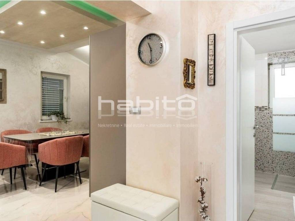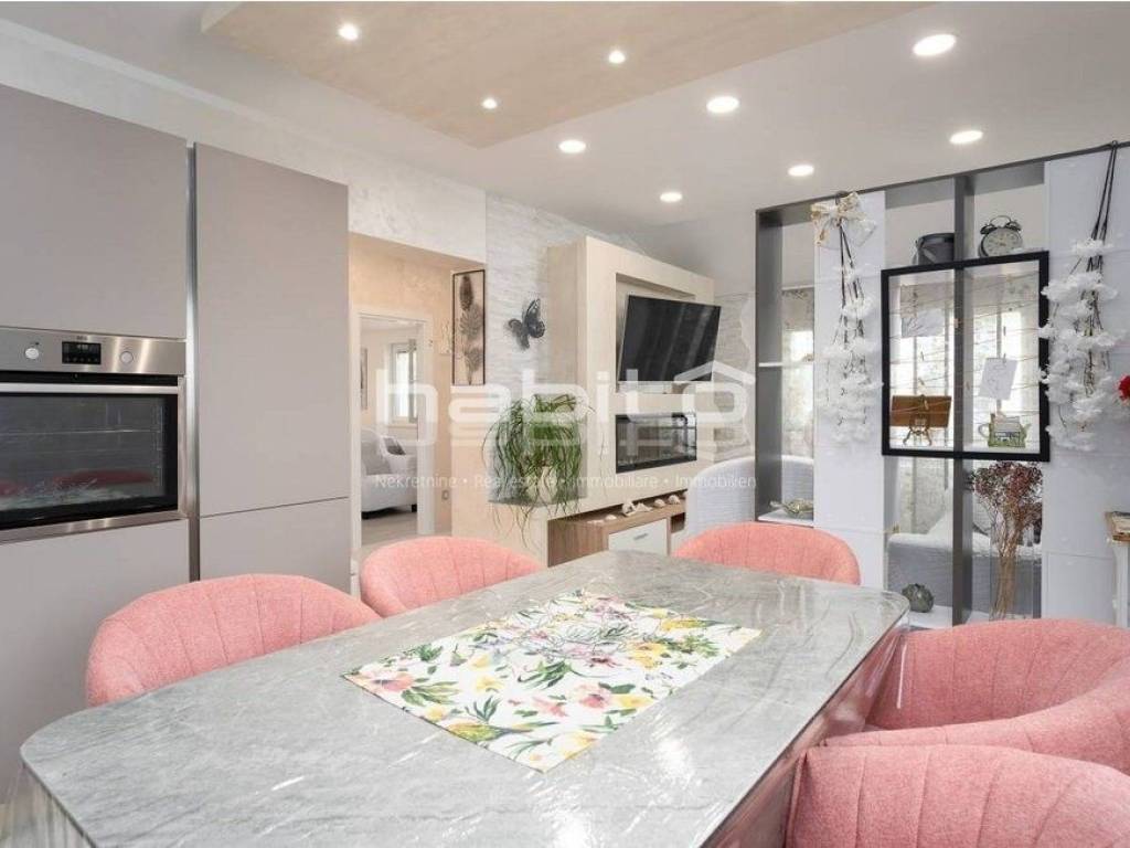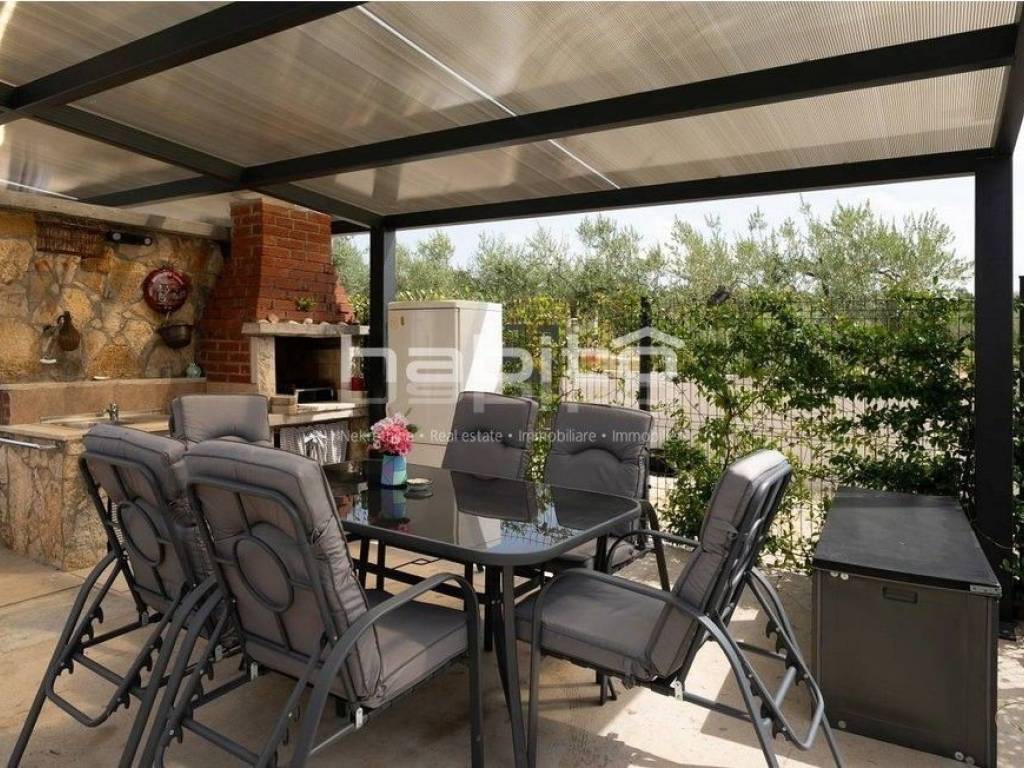 Kuća od 115 m2 nudi dvije spavaće sobe, dva kupatila, kuhinju, blagovaonu, dnevni boravak i prostranu terasu s prekrasnim pogledom na more.