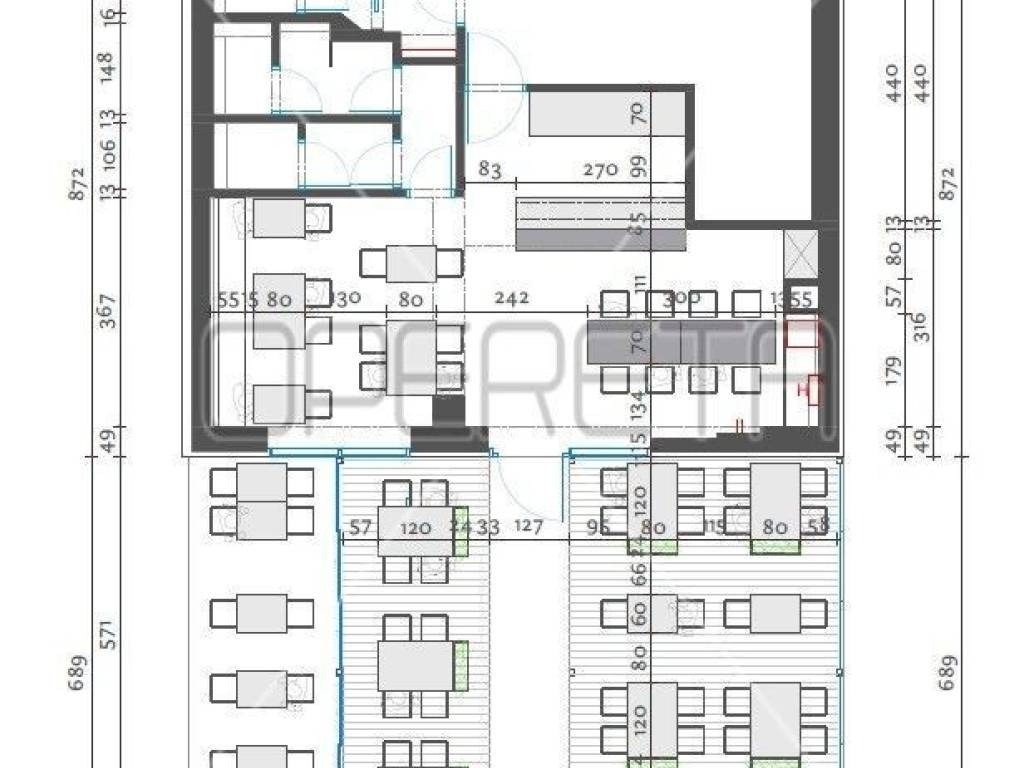 Prodaja, Restoran, Trnje, Savica. Na odličnoj lokaciji u novijoj zgradi prodaje se uhodani restoran površine 78,26 m2, kojemu pripada terasa u prizemlju zgrade površine 70. 47 m2, 2 vanjska parkirna mjesta i jedna garaža. Sav namještj i inventar je u cijeni. Moguće je samo preuzeti posao i nastaviti sa poslovanjem ili ostaviti postojeće najmoprimce. Odlična lokacija!