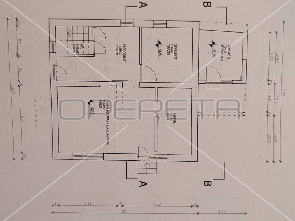 Sama stambena jedinica ima ukupnu bruto površinu u iznosu od 203,78m2 (suteren 78,25m2, prizemlje 83,90m2, potkrovlje 41,63m2).