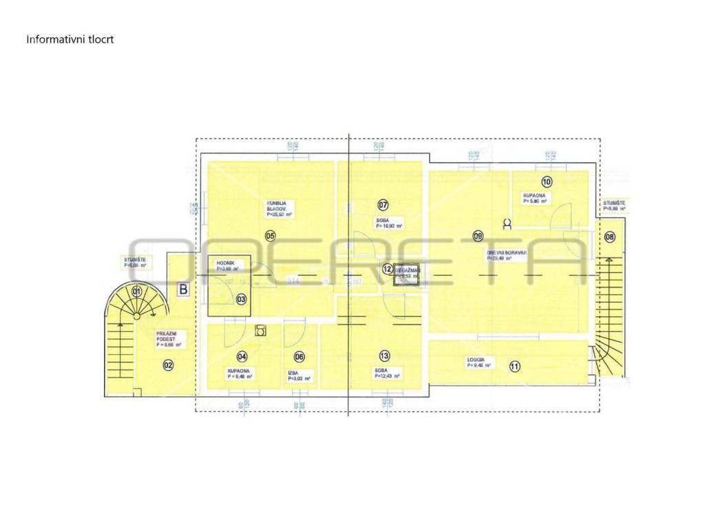Sastoji se od dva stana, zasebnih ulaza kao idealna opcija za više obitelji ili investiciju, a opet, uz mogućnost povezivanja ova dva stana u jedan komforni, obiteljski stan. Jedan od stanova ima i prostranu galeriju koja daje dodatni šarm i ugođaj u prostoru.