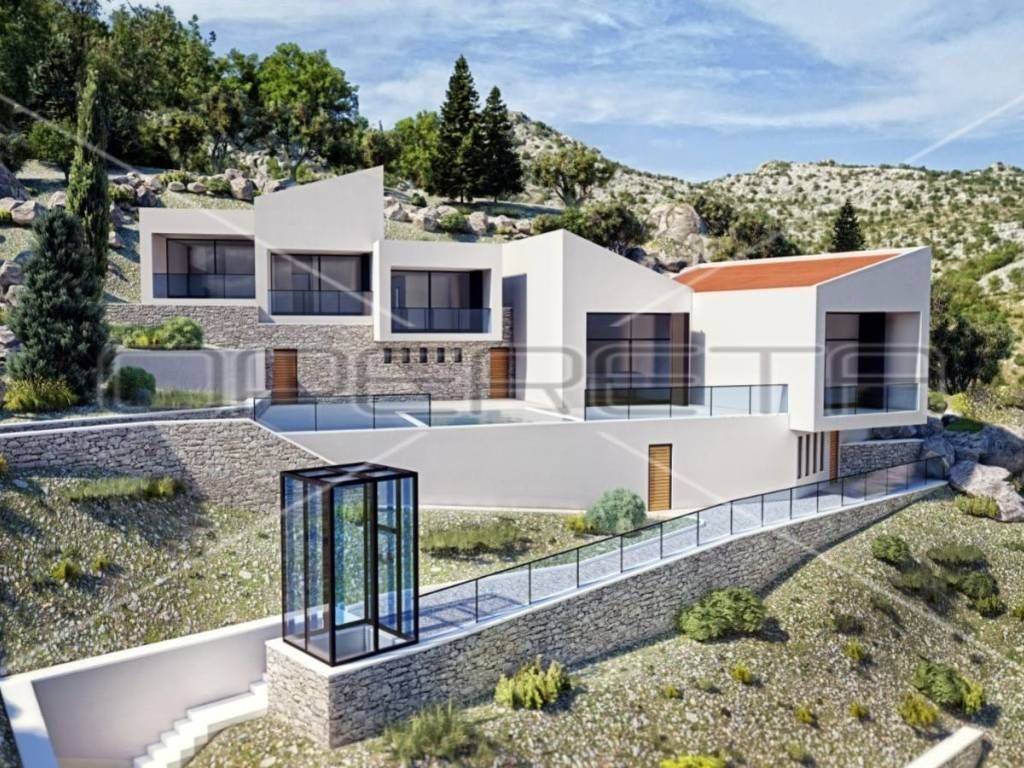 Zemljište s projektom luksuzne vile modernog dizajna prvi red do mora, Starigrad Paklenica, 450m2