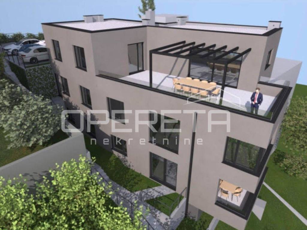 Zagreb, Medveščak, iznimno lijep i prostran četverosoban penthouse površine 125 m2 trenutno se gradi na izvanrednoj lokaciji u blizini središta grada. Smješten na drugom katu stambene zgrade, sastoji se od tri spavaće sobe, prostranog dnevnog boravka, blagovaonice, kuhinje, kupaonice, WC-a, vešeraja, ostave te velike natkrivene terase s koje se pruža očaravajući pogled na grad i zagrebačku katedralu.