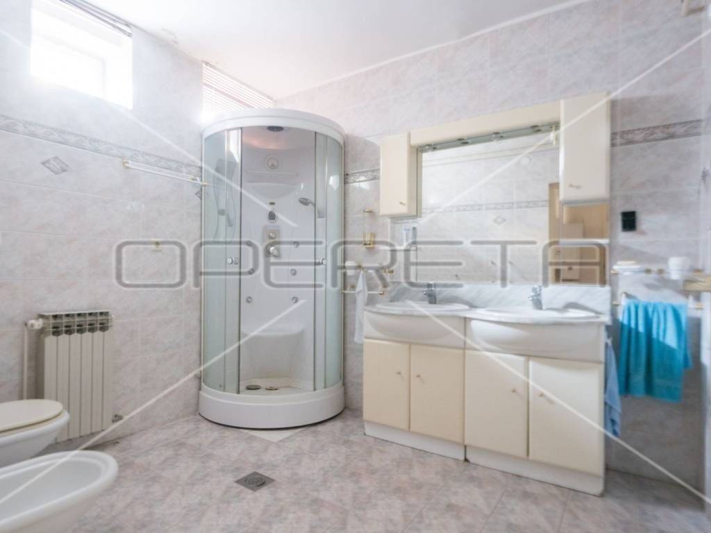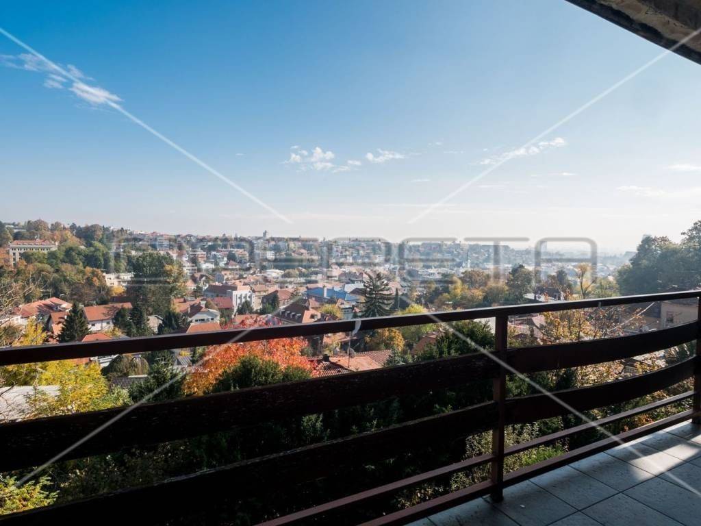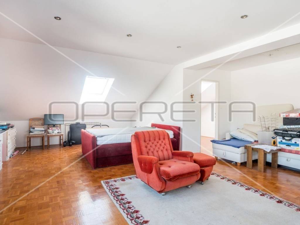 PRODAJA KUĆE, GORNJI GRAD, Jurjevska, 400 m2, četiri etaže + potkrovlje, od kojih je svaka etaža površine 83m2. Trenutno kuća funkcionira kao dva zasebna stana, no stanovi se unutarnjem stubištem mogu povezati u jednu cijelinu. Kuća je sagrađena 1978. godine. Zemljište je površine 301m2. Garaža je za 2 automobila, te parking ispred kuće (na ulici). Kuća se nalazi u najljepšem dijelu Gornjeg grada s predivnim pogledom na grad. Svi potrebni sadržaji za moderan način života nalaze se u blizini kuće (gradski prijevoz, dućani, vrtić, škola).