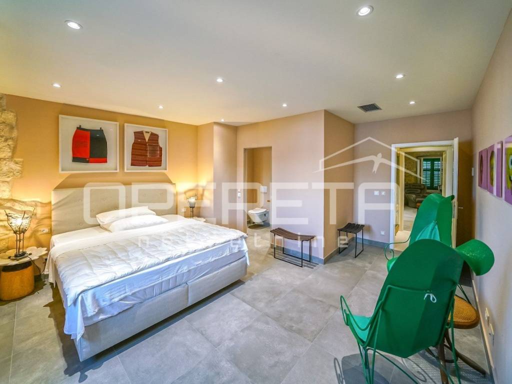 U neposrednoj blizini mora, na Visu, iz naše ponude izvadajamo posjed sa dvije luksuzne kuće sa bazenom. Prva kuća, tlocrtne površine 112 m2 sastoji se od prizemlja i kata. Prizemlje se sastoji od potpuno opremljene kuhinje s povezanim prostranim dnevnim boravkom. Na katu su smještene dvije glavne spavaće sobe s povezanim kupaonicama. Druga kuća, tlocrtne površine od 64 m2 sastoji se od kuhinje s povezanim dnevnim boravkom. Iza dnevnog boravka nalazi se spavaća soba s kupaonicom i malim privatnim vrtom. Na katu su smještene dvije spavaće sobe s vlastitom kupaonicom. Glavna spavaća soba ima tereasu s prekrasnim pogledom na cijeli zaljev. Uz kuću se nalazi i ostava sa sobom za vešeraj. U dvorištu se nalazi bazen, vanjska kuhinja i tradicionalna peć za peku ili roštiljanje. Uz bazen se nalaze još dvije sobe s vlastitim kupaonicama. Više informacija dostupno je na upit.