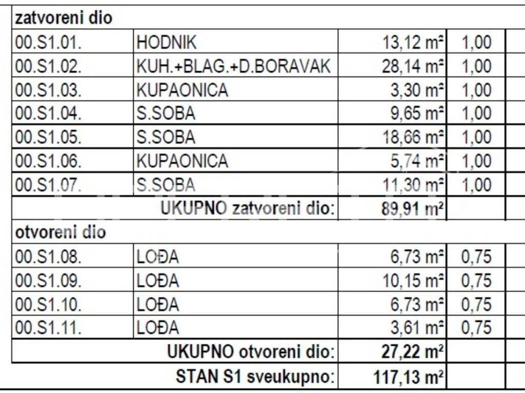 • Dnevnog boravka s kuhinjom i blagovaonicom otvorenog tlocrta s izlazom na dvije lođe