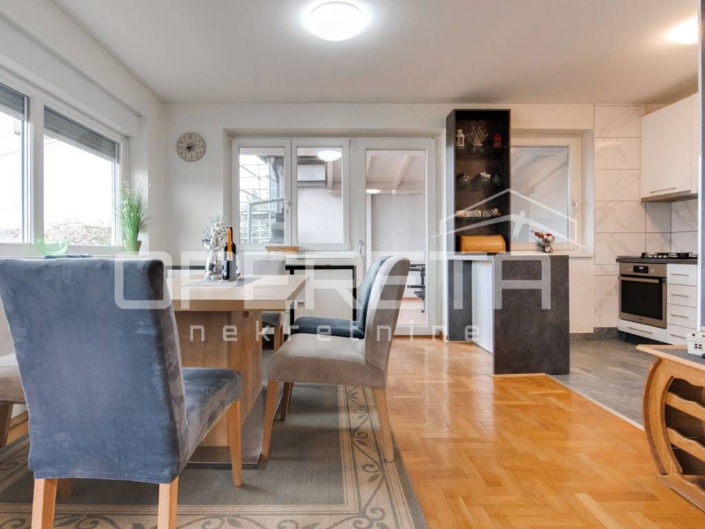 Prodaje se stan s garažom na mirnoj lokaciji udaljenoj 4 minute od Ilice i 3 autobusne stanice od okretišta Črnomerec. Stan ima otvoreni pogled na Medvednicu, a sastoji se od ulaznog hodnika, kuhinje s blagovaonicom i dnevnog boravka s izlazom na balkon/natkrivenu terasu s roštiljem , dvije prostrane spavaće sobe, dva odvojena toaleta, kupaonice i ostave.