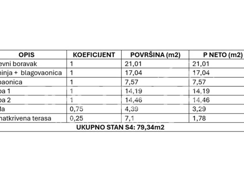 Ovaj stan ukupne neto korisne površine 79,34m2 smjestio se na 2. Katu zgrade. Izvrsna orijentacija jug, sjever i zapad, osigurava mu obilje prirodnog svjetla tijekom cijelog dana. Unutrašnjost stana osmišljena je funkcionalno i moderno, s jasno definiranim zonama za život i odmor