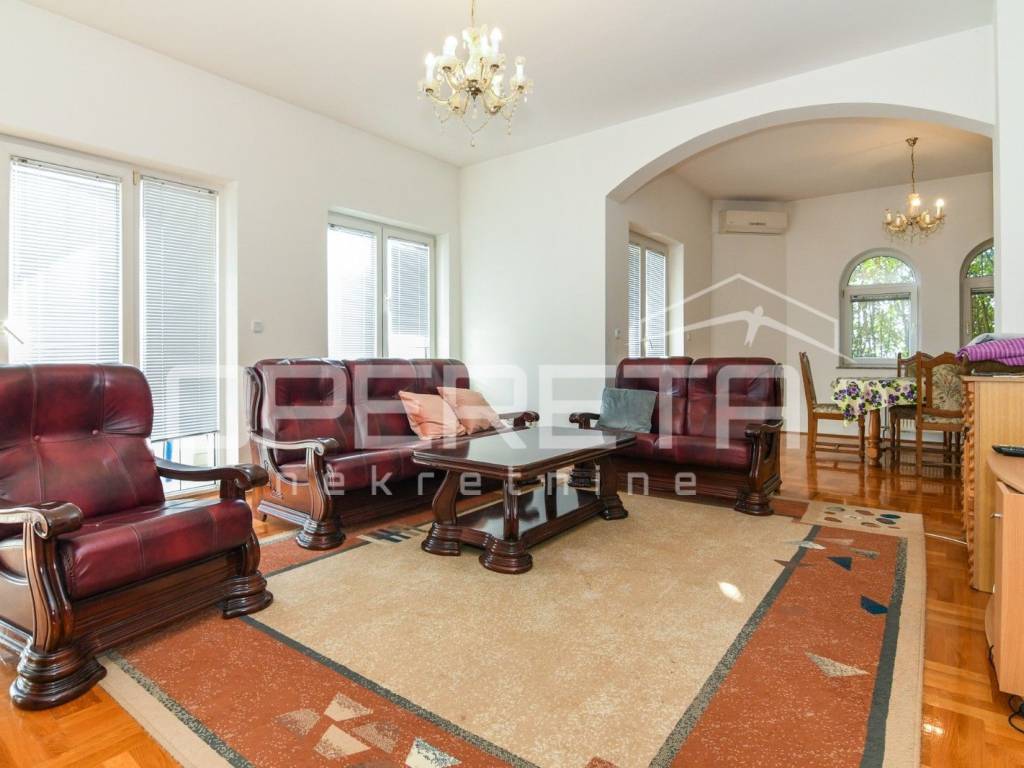 PRODAJA, ZAGREB, KUĆA, GAJNICE, 340m2, samostojeća, kao nova, Ul. Zelena magistrala, dimenzije 14x10. Kuća je koncipirana kao 3 odvojena stana na prizemlju, 1. katu i 2.katu povezani sa unutarnjim svijetlim stubištem i spiralnim zidanim stepenicama što daje dodatni šarm i veličinu same kuće. Svaka etaža (uključujući i prizemlje) ima 110m2 sa istim rasporedima: Hodnik, dnevni boravak, kuhinja s blagovaonicom, kupaonica s wc-om (ima prozore), dvije spavaće sobe (ukupno ih ima 6), posebno wc, spremište i terase. Garaža ima struju i vodu, stanu dva auta te spremište i tavan za odlaganje stvari. Dvorište uređeno i ravno idealno kako za druženje tako i za eventualnu ugradnju vanjskog bazena. Sama kuća ima pristup sa 2 asfaltirane ceste na jako mirnoj lokaciji, te pruža privatnost i udobnost za cijelu obitelj. Građena i održavana s ljubavlju, armirano betonska, pvc, plinsko etažno centralno grijanje, dva ulaza. Idealno za kupca koji želi prostranost, toplinu i sigurnost svog doma i koji će u svim godišnjim dobima uživati u svijetlim prostorijama sa pogledom na zelenilo i grad. PREPORUČUJEMO!!