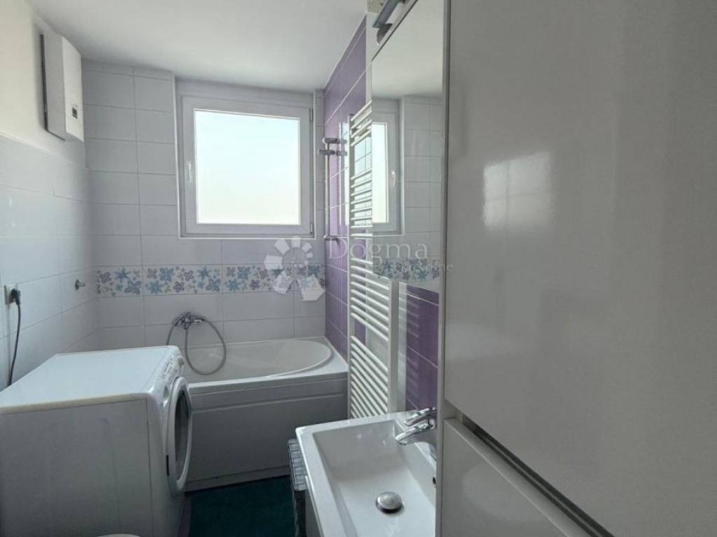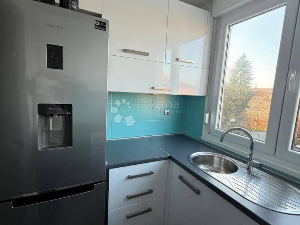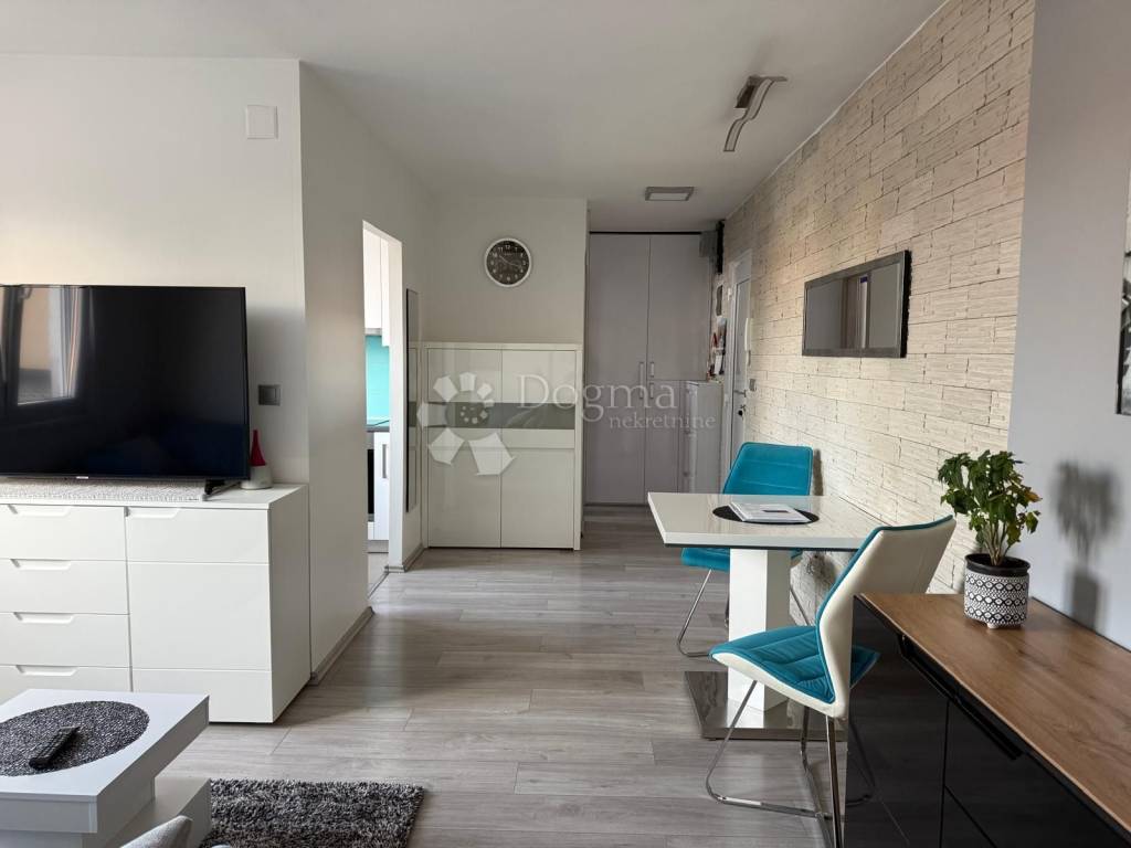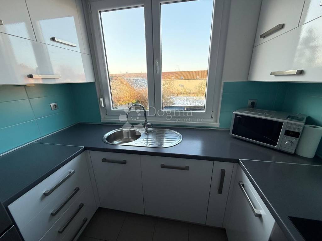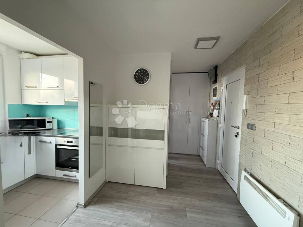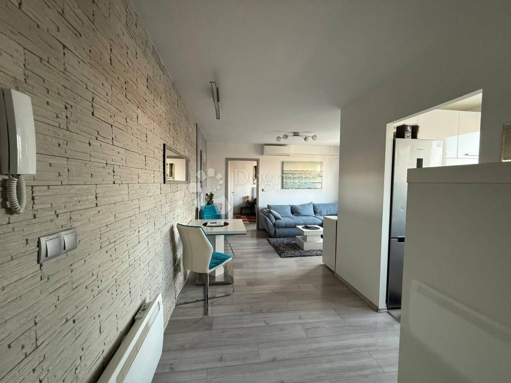 Ulazak u stan vodi kroz hodnik koji ne krade prostor, već ga pametno raspoređuje. Kupaonica je funkcionalna i topla, opremljena s dvije grijalice jer jutra ne moraju biti hladna da bi bila ozbiljna. Kuhinja je zasebna, svijetla i uredna, s uređajima starima oko pet godina, taman dovoljno razrađenima da znate da sve radi kako treba. Dnevni boravak je srce stana: otvoren, ugodan, s ugradbenim ormarom koji diskretno rješava pitanje pohrane i s klima uređajem koji ljeti spašava živce. Namještaj u dnevnom boravku i spavaćoj sobi star je svega godinu dana moderan, očuvan i bez potrebe za ikakvim dodatnim ulaganjima.