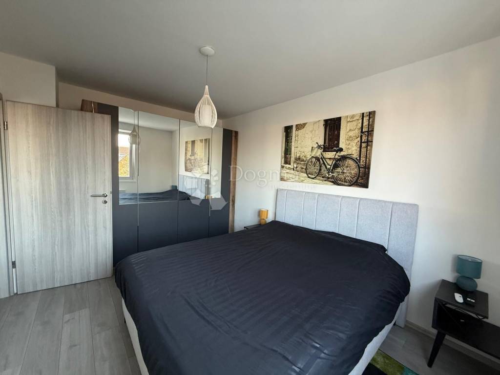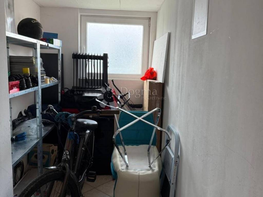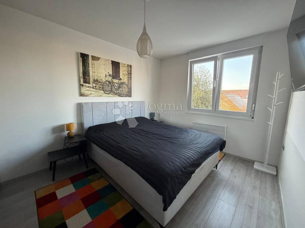 Spavaća soba je mirna i nenametljiva, prostor u kojem se lako spušta tempo dana. Stan se prodaje potpuno namješten, što znači da ovdje doslovno možete doći s koferom i četkicom za zube sve ostalo vas već čeka. U podrumu se nalazi pripadajuće spremište, izolirano i s vlastitim priključkom struje, što je rijetka i vrlo praktična stavka. Dodatni bonus su dva nenatkrivena parkirna mjesta bez kruženja, bez nervoze, bez samo da nešto iskrsne.