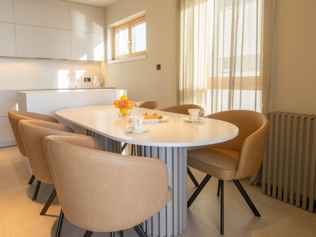 Klimatiziran je Daikin dizalicom topline sve prostorije, postavljeno je podno grijanje, kompletno je opremljen i svi materijali i uređaji koji su u stanu su kvalitete najvišeg nivoa.