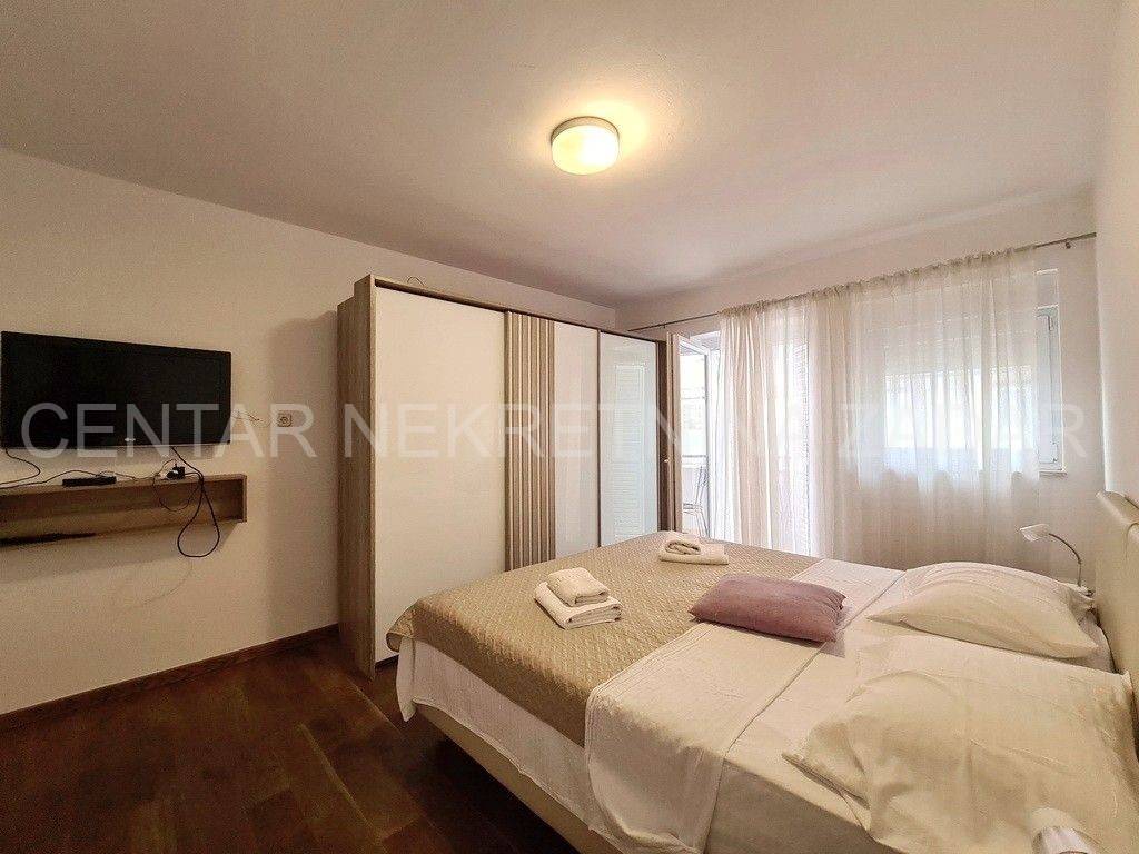 Ekskluzivno pravo posredovanja Prodaje se stan smješten na trećem katu zgrade u samom centru Poluotoka. Površine je 88,36 m i podijeljen je u dva prostrana apartmana. Svaki apartman sastoji se od kuhinje s dnevnim boravkom, jedne velike spavaće sobe i kupaonice, dok je ulazno predsoblje zajedničko. Dnevni boravak i spavaća soba jednog apartmana imaju svoje male balkone s pogledom na more, dok drugi apartman ima dugi balkon južne orijentacije na kojeg se izlazi iz dnevnog boravka i spavaće sobe. Stan je potpuno renoviran 2018. g. kada su uređene dvije stambene jedinice - promijenjene su instalacije struje i vode, postavljena nova stolarija i podovi. U oba dnevna boravka je klima uređaj. Apartmani se uspješno iznajmljuju tijekom ljetne sezone. Prodaju se potpuno namješteni i opremljeni što novom vlasniku omogućuje jednostavni nastavak poslovanja. Stan se također može urediti kao jedna cjelina s dvije ili tri spavaće sobe. Zgrada ima svoje prostrano dvorište puno zelenila, što je velika prednost za obitelji s djecom. Parking je dostupan u neposrednoj blizini. Lokacija zgrade je odlična blizu je trgovina, tržnice, restorana i svih sadržaja potrebnih za ugodan odmor ili svakodnevni život. Za razgledavanje molim nazovite 099/325-2763.