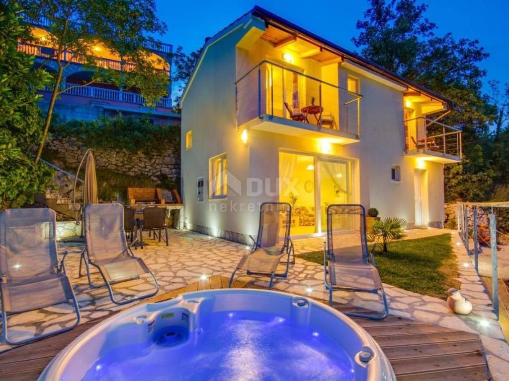 OPATIJA,MOŠĆENICE- kuća 85m2 s panoramskim pogledom na more + okoliš 133m2  Prodaje se novoizgrađena moderna vila ukupne stambene površine 85 m2 na okućnici površine 133 m2. Sastoji se od prizemlja i kata. U prizemlju se nalazi kuhinja sa blagavaonicom i dnevni boravak otvorenog koncepta koji pružaju pogled na terasu s jacuzzijem i na more.  Na katu se nalaze dvije spavaće sobe svaka sa svojim balkonom i jedna kupaonica.  Prostrana, pažljivo uređena terasa ima hidromasažnu kadu koja se može koristiti tijekom cijele godine.  Novoizgrađena, modernog elegantnog dizajna, ručno biranog namještaja i dekoracije, kuća nudi sve što je potrebno za savršen život i odmor. Kuća je u potpunosti opremljena sa svim sadržajima za ugodan boravak; od potpuno opremljene kuhinje, wifi interneta, TV-a ravnog ekrana, satelitskog grijanja/klime, spavaćih soba, kupaonica itd.  Panoramski pogled na more i cijeli Kvarnerski zaljev jedina je stvar koju nećete zaboraviti, počevši od vaše prve jutarnje kave s pogledom na kombinaciju zelenih stabala i plavog Jadranskog mora ili uživanja u pogledu uz čašu vina u vanjskoj hidromasažnoj kadi..  Idealna nekretnina za investiciju u već uhodani posao turističkog najma ili za obiteljsku kuću.  Ova nekretnina je udaljena 740m zračne linije od mora, odnosno 4,7km automobilom (cca 11 min).   OPATIJA: Opatija, predivan obalni grad smješten na Jadranskom moru poznato je turističko odredište za turiste iz cijelog svijeta. Grad je okružen prekrasnom prirodom, u podnožju planine Učka. Iz nekretnina u Opatiji pruža se neprocjenjivi pogled na more i okolne otoke Krk i Cres. Opatija je okružena šarmantnim malenim gradovima s starim kućama smještenim u uskim uličicama bogate povijesti. Ulice grada Opatije čine nekretnine koje se ističu specifičnom arhitekturom te vilama koje datiraju iz habsburškog perioda. Veliki izbor plaža, kristalno čistog mora i raznovrsne turističke usluge ključni su faktori zbog kojih je Opatija svršena turistička destinacija prepoznata od strane susjednih zemalja kao odličan investicijski izbor. Cijene nekretnina na ovom području rastu, popunjenost iznajmljivanja je izvrsna što je uzrokovalo povrat investicije od 5% do 10% i privlačenje inozemnih ulagača.   MOŠĆENICE: Mošćenice – srednjovjekovni utvrđeni istarski gradić udaljen 14 km od poznatog ljetovališta Opatije, povrh malog ribarskog mjesta Mošćenička Draga (udaljeno 2,5 km) u istoimenoj općini. Nalazi se na brijegu visokom 173 m na istočnim padinama planine Učke s prekrasnim pogledom na Kvarner te otoke Krk i Cres. Ulaz u grad je dostupan samo s jedne strane i to na mjestu gdje se nalaze gradska vrata dok je s ostalih strana gradić okružen padinom koja se strovaljuje sve do mora. Stubištem su spojene s prostranom plažom na Sv. Ivanu u Mošćeničkoj Dragi.    Poštovani klijenti, agencijska provizija naplaćuje se u skladu s Općim uvjetima poslovanja www.dux-nekretnine.hr/opci-uvjeti-poslovanja   ID KOD AGENCIJE: 16160  Patrik Hrštić Agent s licencom Mob: +385 91 270 3979 Tel: +385 91 480 8808 E-mail: patrik@dux-nekretnine.hr www.dux-opatija.com