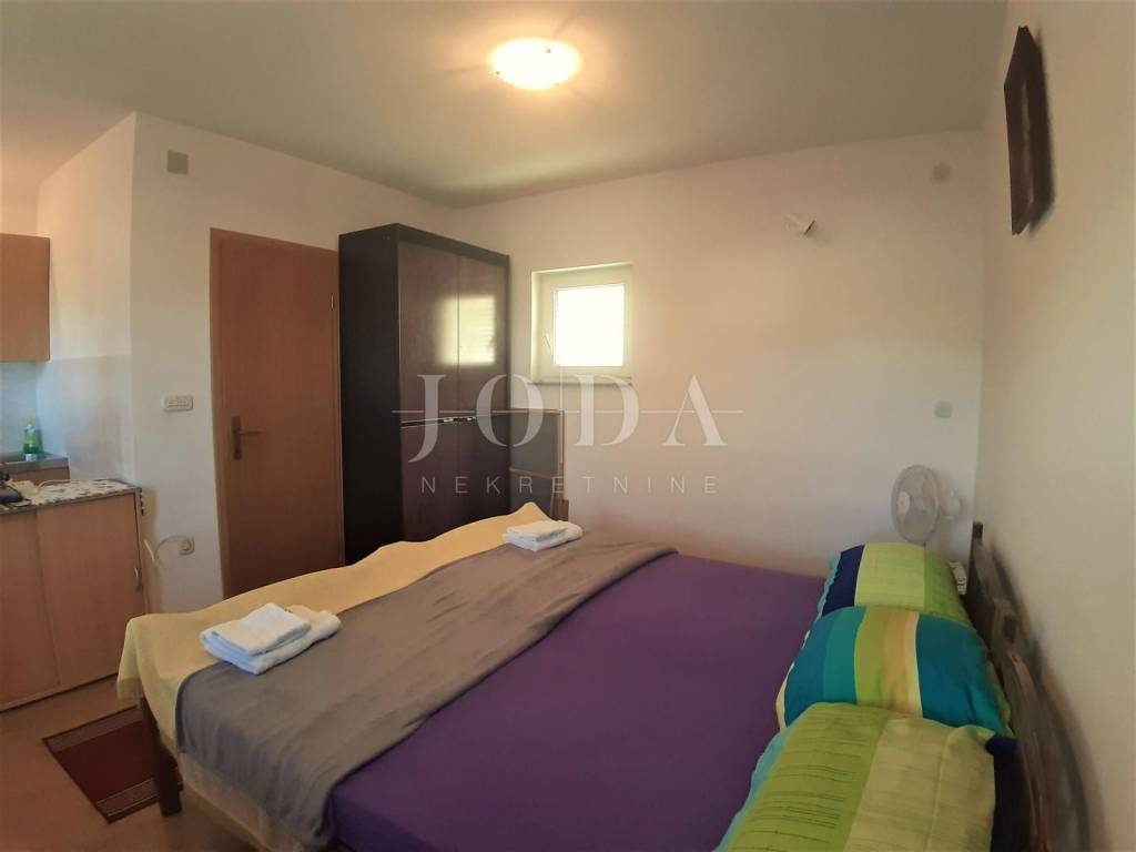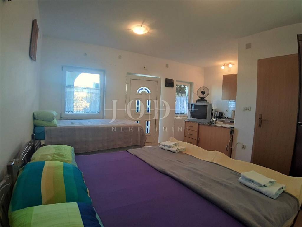 Prodajemo kuću sa četiri manja apartmana na mirnoj lokaciji nedaleko od centra grada sa prekrasnim pogledom na more i grad. Svaki apartman ima svoj poseban ulaz. U prizemlju se nalaze dva studio apartmana, vanjskim stepenicama ide se na kat, gdje se nalazi jedan jednosobni i jedan studio apartman sa pripadajućim balkonima. Kuća je u potpunosti namještena i klimatizirana, te spremna za korištenje. Unutar ograđene okućnice nalaze se dva parkirna mjesta.  ID KOD AGENCIJE: 2967  Marina Mudrovčić Agent s licencom Mob: 0915787803 Tel: 051403771 E-mail: marina@joda-nekretnine.hr www.joda-nekretnine.hr