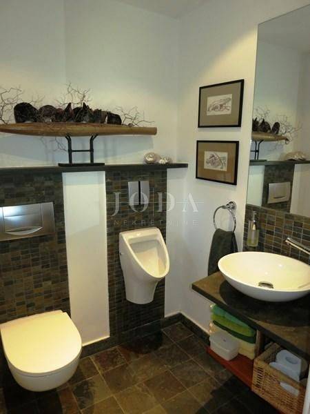 Predivna samostojeća kamena villa s dva pomoćna smještajna objekta na imanju površine 25.000 m2 na području Šotovento na otoku Krku. Villa se sastoji od tri etaže. U suterenu ville smještena je garaža, ostava, konoba uređena u autohtonom stilu, wc te moderna kotlovnica s najnovijom tehnologijom. Prizemlje se sastoji od kuhinje i blagovaone, dnevnog boravka s ložištem, kupaonice, prostorije za opuštanje te radne sobe, dok se na katu nalazi velika spavaća soba, garderoba, wc, kupaona i prostrana terasa s predivnim pogledom na more i maslinike. Kuća je u potpunosti renovirana te uređena vrhunskim namještajem i prvoklasnom opremom. Karakteriziraju je stilski uređene površine, pregršt dizajnerskih detalja i prirodni materijali s pomno planiranim osvjetljenjem za što opušteniji i ugodniji boravak. Na imanju se nalaze i dva kamena pomoćna objekta. Jedan od njih je uređen kao garsonijera koja služi za boravak gostiju, dok je drugi objekt namijenjen za druženje i sastoji se od prostorije s kaminom, kuhinje i wc-a. Sva tri objekta imaju izlaz na terasu na kojoj se nalazi roštilj. Na uzvišenom položaju, nekoliko desetaka metara iznad kuće, nalazi se sjenica s koje se proteže otvoreni pogled na cijelo imanje, panoramski pogled na more i otok Cres. Cijelo imanje odiše komforom, ljepotom i luksuzom te čini savršeno mjesto za odmor tokom cijele godine koje pruža visoku razinu privatnosti i luksuza za obitelj i društvo. ID KOD AGENCIJE: EI-405 Josip Šikić, mag.oec Agent s licencom Mob: +385 91 890 4694 Tel: +385 51 403 771 E-mail: info@joda-nekretnine.hr www.joda-nekretnine.hr