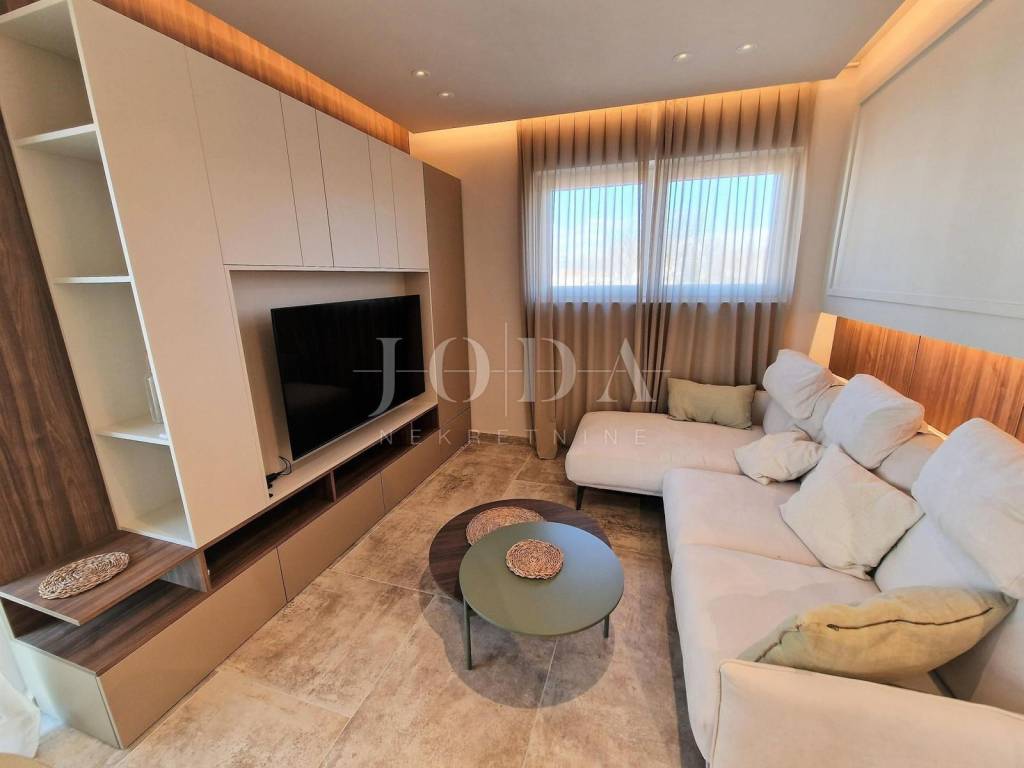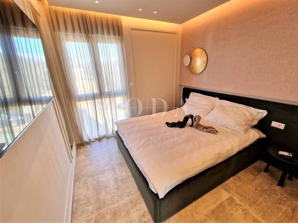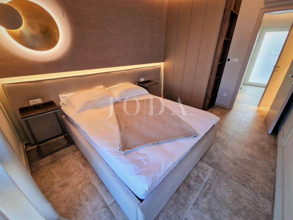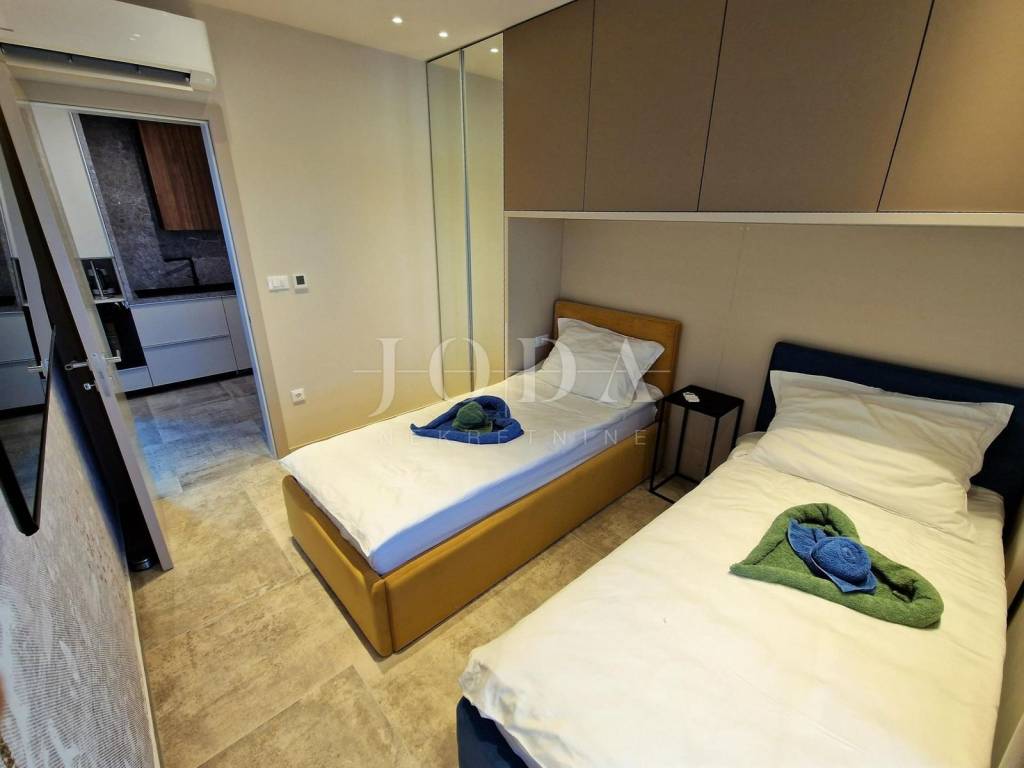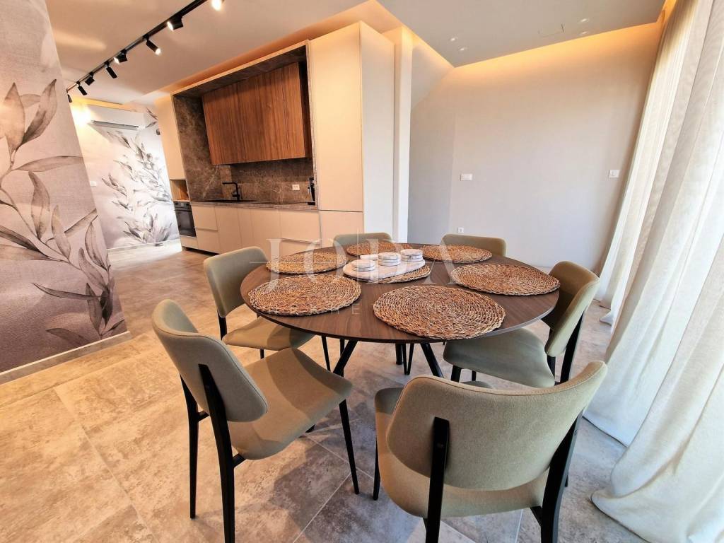Prodaje se novi, moderno opremljen dvoetažni apartman s bazenom i pogledom na more u Njivicama na otoku Krku!  Apartman je smješten u stambenoj zgradi na odličnoj lokaciji, cca 500 metara od plaže. Ukupna stambena površina apartmana je 112 m2. Raspoređena je na prizemlje, gdje se nalazi spavaća soba, kupaonica i vešeraj te kat gdje je dnevni boravak s kuhinjom i blagovaonicom, balkon, dvije spavaće sobe i još jedna kupaonica. Apartman je kompletno namješten i opremljen - klimatizacija prostorija, podno grijanje, moderne sanitarije i kvalitetne podne obloge. Prodaje se sa svom opremom i namještajem te je spreman za useljenje. S kata se dolazi na  krovnu terasu s prekrasnim pogledom na more, bazenom i sunčalištem. Apartmanu pripadaju i dva parkirna mjesta. Za više informacija, kontaktirajte nas!  ID KOD AGENCIJE: EI-4595  Josip Šikić, mag.oec Agent s licencom Mob: +385 91 890 4694 Tel: +385 51 403 771 E-mail: info@joda-nekretnine.hr www.joda-nekretnine.hr
