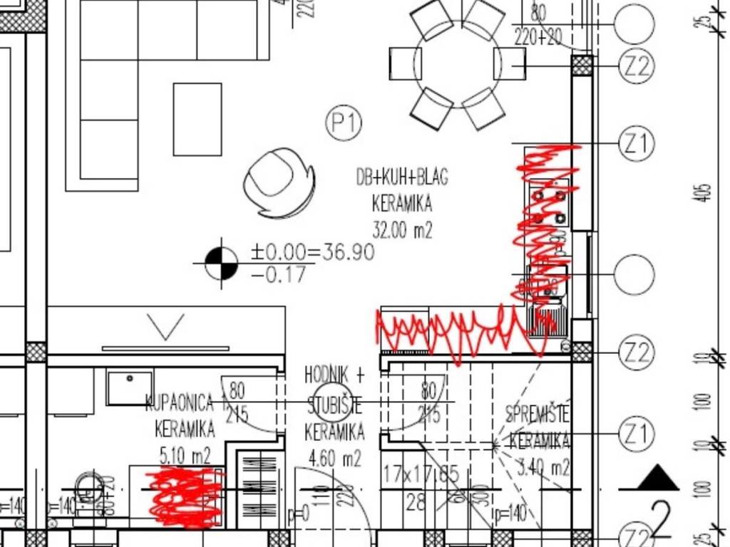 U prizemlju se također nalazi velika kupaona sa wc-m, te unutarnje stepenište koje Vas vodi na kat kuće.