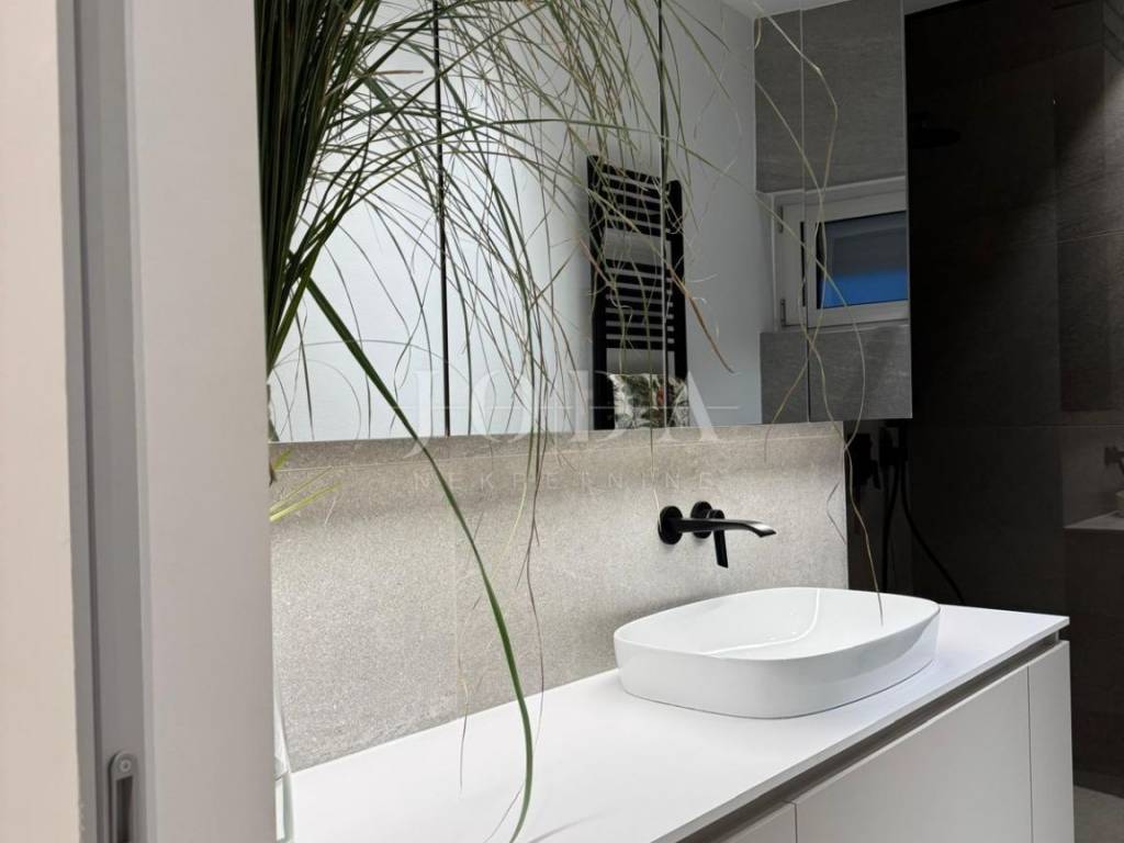 Prodaje se moderan apartman s bazenom u suterenu urbane ville u novogradnji u centru grada Krka. Apartman površine 74,71 m2 ima dobar raspored. Sastoji se od ulaznog hodnika, dvije spavaće sobe, kupaonice, spremišta, kuhinje s blagovaonicom, te dnevni boravak s izlazom na veliku terasu površine 26,70 m2. Ispred apartmana je okućnica površine oko 200 m2 na kojoj se nalaze bazen, sunčalište i mjesto za druženje. Na raspolaganju su dva parkirna mjesta. Pri gradnji se koriste kvalitetni materijali i oprema kao što su sanitarije renomiranih proizvođača, kvalitetne keramičke pločice, parket u sobama, aluminijska stolarija s električnim roletama, te protuprovalna vrata. Ugrađeno je podno grijanje putem dizalice topline, te klima uređaji (Daikin) u svim prostorijama. Nekretnina je u gradnji, a prodaje se po sistemu "ključ u ruke". Postoji mogućnost kupnje kompletno namještenog apartmana uz nadoplatu. Planirani datum useljenja je na ljeto 2024. Odlična urbana lokacija u blizini svih sadržaja i plaže. ID KOD AGENCIJE: EI-5685 Josip Šikić, mag.oec Agent s licencom Mob: +385 91 890 4694 Tel: +385 51 403 771 E-mail: info@joda-nekretnine.hr www.joda-nekretnine.hr