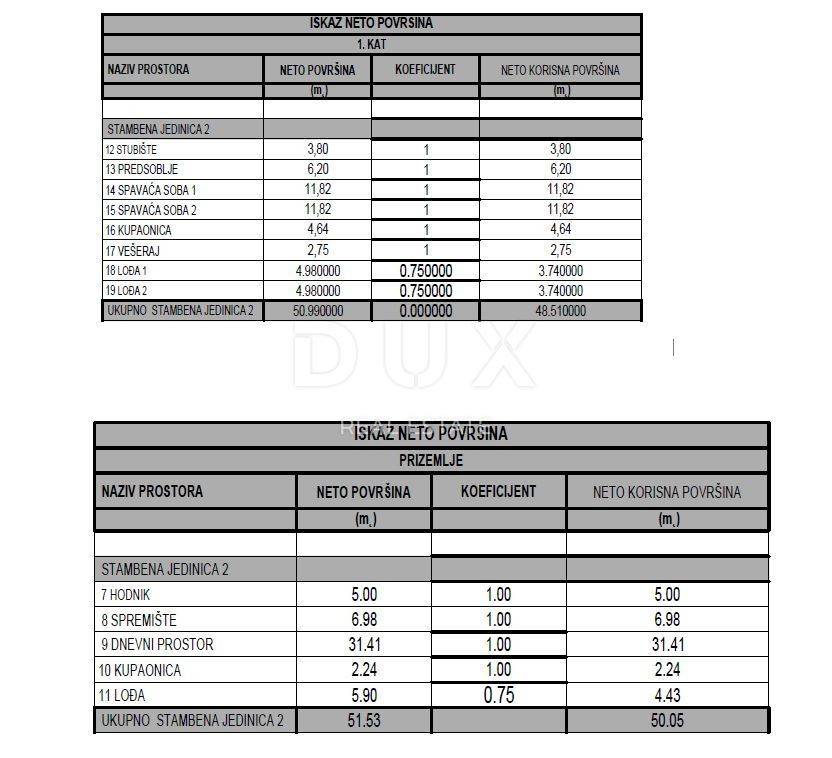 VODICE - Predivni dvoetažni stan S2 na mirnoj lokaciji Prodaje se dvoetažni stan ukupne površine 115,56 m2. Stan se nalazi u mirnoj ulici u Vodicama nedaleko od centra mjesta i plaža. Stan se proteže kroz prizemlje i prvi kat zgrade. U prizemlju se nalazi dnevni boravak s kuhinjom i blagavonicom te iz kojeg se izlazi na lođu. U prizemlju se još nalazi hodnik, kupaonica, spremiste te stubište koje vodi na prvi kat. Na katu se nalaze dvije spavaće sobe koje imaju izlaz na natkrivenu terasu, odvojena kupaonica te vešeraj. Stan posjeduje dvorište te dva parkirna mjesta. Stan je opremljen klima uređajima te podnim grijanjem što osigurava optimalnu temperaturu tijekom svih godišnjih doba. U gradnji stana korišteni su visokokvalitetni materijali koji jamče dugovječnost i udobnost. VODICE – Šarmantan grad noćnog života i plaža Vodice su malo turističko odredište smješteno 10 kilometara sjeverno od Šibenika. Popularne su među mladim posjetiteljima koji traže živahna mjesta. Vodice se diče sjajnim hotelima, plažama i bogatom ponudom noćnog života. Ime "Vodice" prvi put se spominje u pisanim radovima 1402. godine, iako je poznato da su tamo živjeli ljudi još u rimsko doba. Mjesto je nazvano "Vodice" zbog obilja vode i bunara. U blizini se nalazi otočić Prvić, grad Split udaljen je 69 km, Zadar 59 km, a najbliža zračna luka 49 km. Poštovani klijenti, agencijska provizija naplaćuje se u skladu s Općim uvjetima poslovanja: www.dux-nekretnine.hr/opci-uvjeti-poslovanja ID KOD AGENCIJE: 35943 Dux Zadar Mob: +385 91 312 1121 Tel: +385 91 480 8808 E-mail: info@dux-nekretnine.hr www.dux-dalmacija.com