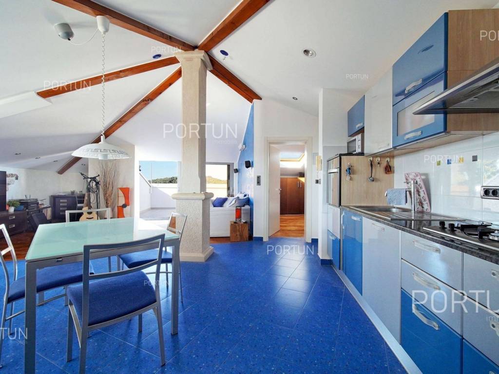 Atraktivan stan s dvije prostrane spavaće sobe i elegantnom kupaonicom, smješten je u jednom od najpoželjnijih dijelova Rovinja, a očarat će vas nevjerojatnim pogledom na more i pitoreskni stari grad. Ovaj stan zauzima vrhunsku poziciju na najvišoj etaži moderne stambene zgrade, nudeći udobnost i ekskluzivnost. Sastoji se od prostranog dnevnog boravka s kupaonicom, dvije prozračne spavaće sobe, jedne kupaonice i ugodne terase. Uz to, stanu pripada i parkirno mjesto u dvorištu te praktično spremište u podrumu. Izuzetno je opremljen modernim namještajem, odličnim kuhinjskim aparatima te visokokvalitetnom PVC i aluminijskom stolarijom. Za udobnost tijekom svih godišnjih doba, osigurani su dva klima uređaja za grijanje i hlađenje, a po želji, moguće je instalirati i peć na kruta goriva. Lokacija ovog stana je izuzetno praktična - u blizini su kafići, restorani, škole i sportski tereni, pružajući dinamičan i aktivan životni stil. Plaža je udaljena samo 900 metara, dok stari grad Rovinj leži na udobnih 1.3 kilometara. LokacijaSa svojim uskim ulicama, starim kamenim kućama, srednjovjekovnim crkvama, beskrajnim vidicima na krajolik i more, simpatičnim malim dućanima, umjetničkim galerijama, vinskim barovima i osebujnom prirodom, Istra nije samo mjesto za posjetiti, već i mjesto za život! Smješten na sjevernom Jadranu, na zapadnoj obali istarskog poluotoka, smjestio se Rovinj, šarmantni gradić poznat po svojoj bogatoj povijesti, očaravajućoj starogradskoj jezgri i izuzetnim znamenitostima. Mirna rezidencijalna lokacija u Rovinju, idealna je za otkrivanje brojnih zanimljivosti i sadržaja u blizini stana:More | Plaža 900 m Usluge | Dućan 350 m - Kafić ili bar 350 m - Gostionica ili restoran 450 m - Osnovna škola 700 m - Vrtić 850 m - Dom zdravlja 1000 m - Apoteka 1000 m - Marina 1000 m Sport i zabava | Nogometno igralište 600 m - Igralište za rukomet 900 m - Igralište za košarku 500 m - Javni bazen 4 km - Park šuma zlatni Rt 1000 m Mjesta u blizini | Bale 13 km - Kanfanar 18 km Promet | Ulaz na autocestu Kanfanar 15 km - Zračna luka Pula 40 km Zanimljivosti | Posebni ornitološki rezervat Palud 8 km RasporedUlaz u stan je na razini potkrovlja. Svijetao stan otvorenog rasporeda, površine 91 četvornih metara sastoji se od dnevnog boravka s kuhinjom i blagovaonicom, dvije spavaće sobe, jedne terase i jedne kupaonice. Parking i pripadci• Parkirno mjesto• Podrum 8,00 m2Svojstva zgradeStan se nalazi u višestambenoj zgradi koja se proteže kroz podrum, prizemlje, dvije nadzemne etaže i potkrovlje. Ulaz u zgradu je izveden u razini prizemlja, sa sjeveroistočne strane, a vertikalna komunikacija se odvija putem unutarnjeg stubišta. Osnovne arhitektonske karakteristike ove dobro održavane višestambene zgrade su:• 13 Stanova - 13 Parkirnih mjesta• Vanjski zidovi | Zid iz blok opeke 25 cm • Armirano betonska međukatna konstrukcija• Krovište | Kosi krov pokriven crijepom• E. Certifikat A• Izgrađeno 2004. g.Namještaj i opremaNamještaj | Veći dio namještaja je uključen u cijenuOprema | Parlafon - Moderna rasvjeta - Sanitarije - Kupaonski namještajStolarija | Aluminijska stolarija s dvostrukim ostakljenjem - PVC stolarija s dvostrukim ostakljenjem - Protuprovalna ulazna vrata - Klasična sobna vrataGrijanje i hlađenje | Klimatizirano - Dimnjak - Kupaonski radijatorPodne obloge | Keramičke pločice - ParketInfrastruktura• Priključak na elektroenergetsku mrežu sa vlastitim brojilom• Vlastiti priključak na vodopskrbnu mrežu• Priključak na kanalizaciju• Asfaltirana javna prometnicaDokumentacijaRaspoloživa dokumentacija | Etažni elaboratObračun površineU površinu stana (90,60 m2) uračunate su površine ovih prostorija:Stambeni prostor = 83,40 m2*Terasa = 7,20 m2**Površine su obračunate s koeficijentom k= 1,00Izvor podataka = Etažni elaborat