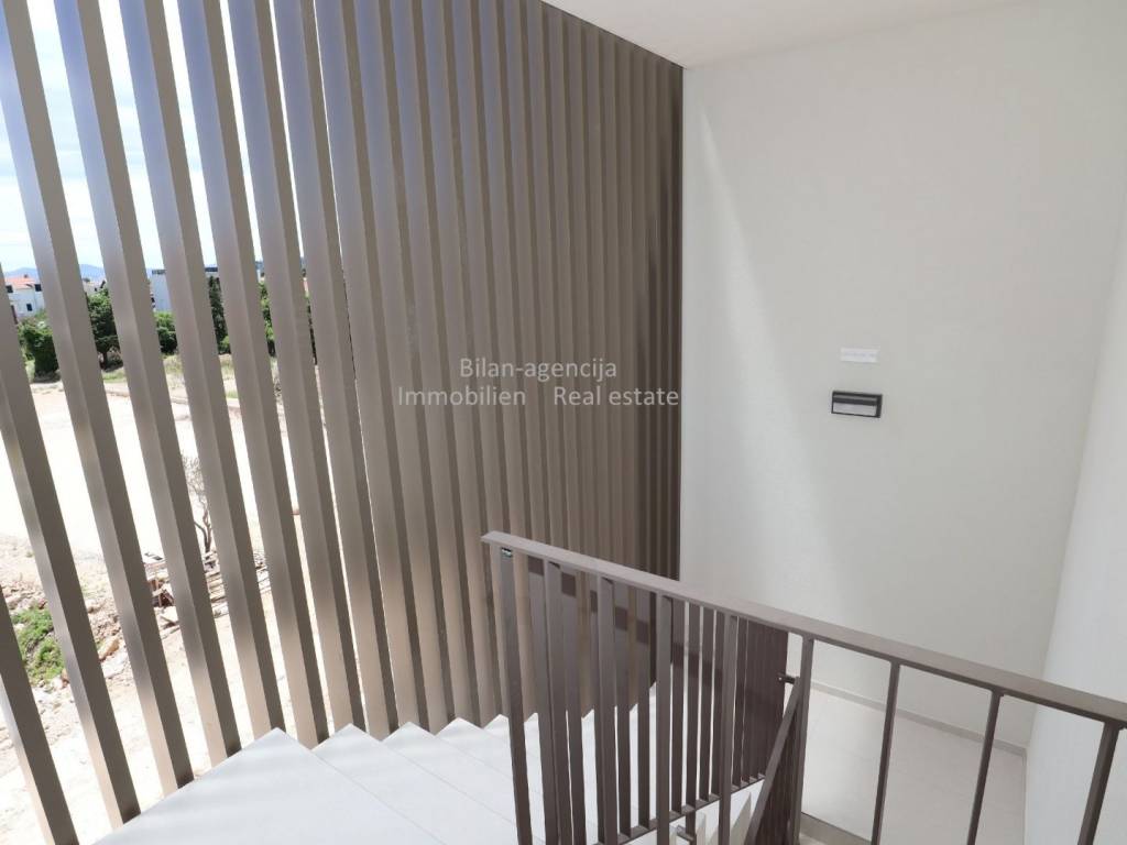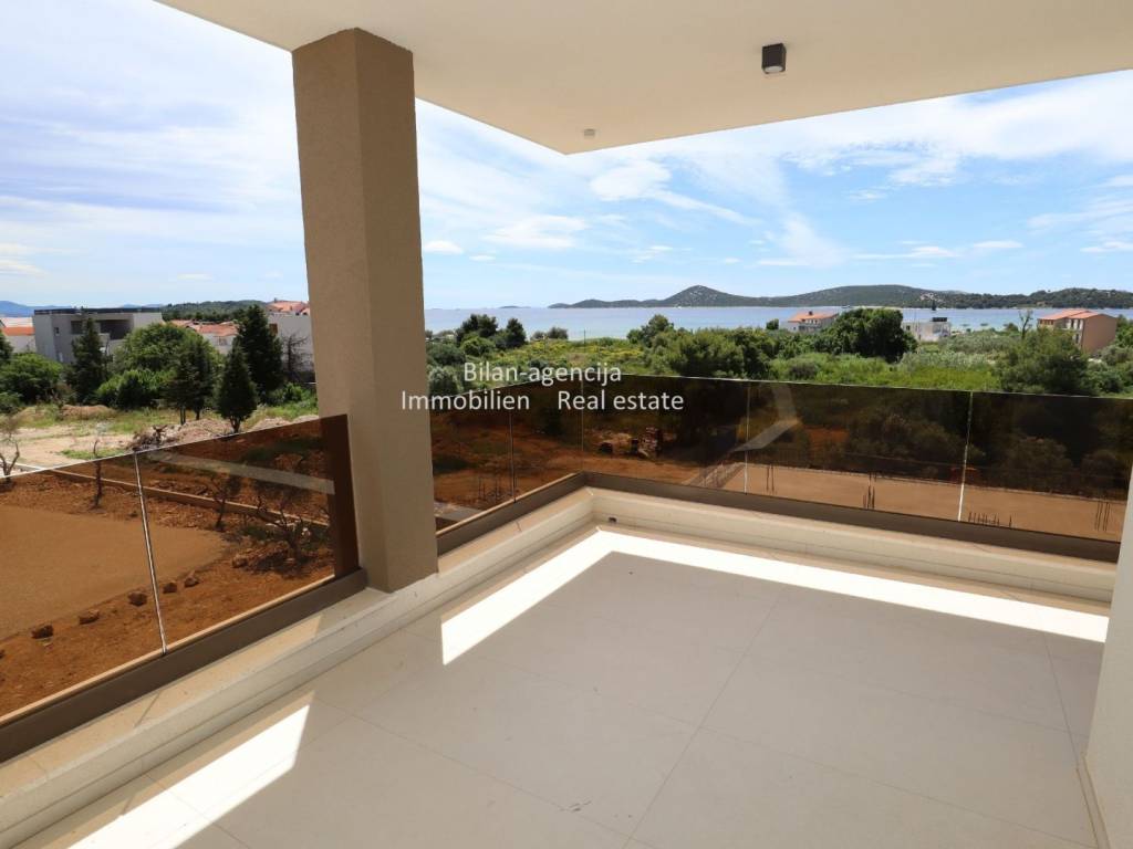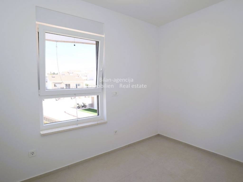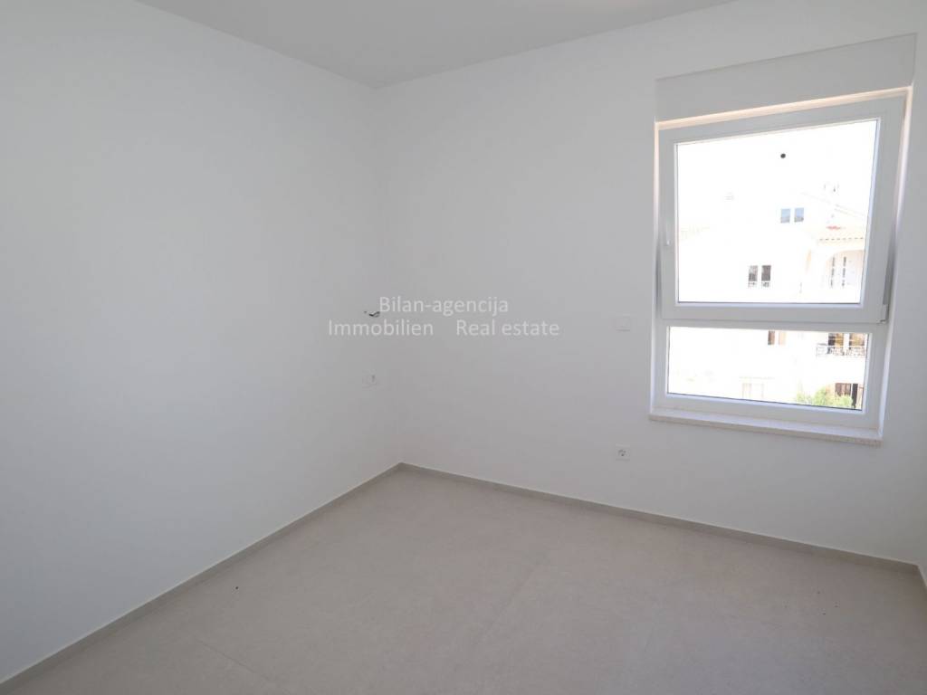 Stan se nalazi u Vodicama, na drugom katu novogradnje. Sastoji se od 3 spavaće sobe, 2 kupaonice, kuhinje-blagovaone-dnevnog boravka, hodnika i terase sa direktnim pogledom na more. Stanu pripada podrumsko spremište površine 9,61 m2 i 2 parkirna mjesta u ograđenom dvorištu.