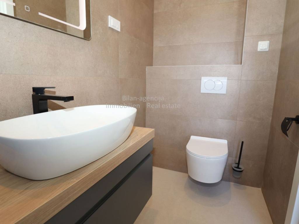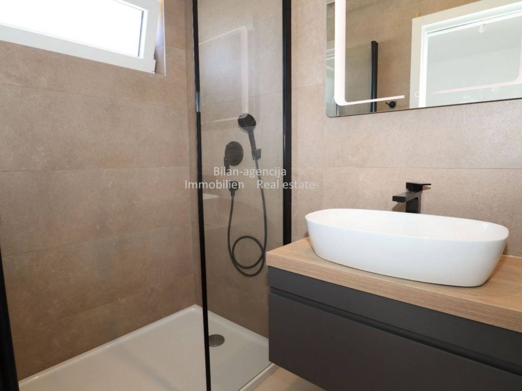 Zgrada se sastoji od prizemlja i dva kata, ukupno 3 stana. Svi stanovi su opremljeni sa sistemom klimatizacije i podnim grijanjem, kvalitetnim vratima i prozorima sa elektro roletama i zaštitom od insekata. Podovi su obloženi kvalitetnim i modernim porculanskim pločicama.