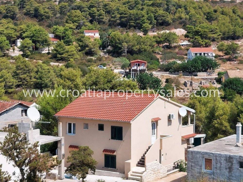 Zanimljiva dvojna kuća, sagrađena 1986. godine, a potpuno renovirana 2015. godine.Nalazi se u mirnom i tihom mjestu otoka Visa, predio Rukavac, istočno orijentirana, 700 m udaljena od mora i 8 km od centra Visa te trajektne luke.U blizini se nalaze mnogobrojne poznate plaže, među kojima je i Srebrna, koja slovi kao jedna od najljepših šljunčanih plaža na cijelom Jadranu.Kuća je raspoređena na prizemlje, te dva kata.Sastoji od tri zasebna apartmana – svaki kat čini jedan apartman, te svaki apartman ima svoj ulaz.Ako pogledate slike nekretnine, u prodaji je lijevi dio kuće.Prizemlje je pretvoreno kao studio apartman - s kuhinjom, kupaonicom, dnevnim boravkom i spavaćom sobom u jednom, ukupne površine 21,39 m2,  te terasom (suteren) od 12 m2.Prvi kat ukupne površine 38,76 m2 se sastoji od kuhinje, kupaonice, jedne spavaće sobe, dnevnog boravka, s vanjskim spremištem koje se nalazi ispred glavnog ulaza,  te terase od 12 m2.Drugi kat se isto sastoji od kuhinje, kupaonice, jedne spavaće sobe, dnevnog boravka, ukupne površine od 30,5 m2, te terase od 9,5 m2.Kuća sadrži i potkrovlje, površine od 20,44 m2.Ova dvojna kuća se nalazi na površini od 150 m2, te ima 2 popločana parking mjesta.Za sva dodatna pitanja Vam rado stojimo na raspolaganju.